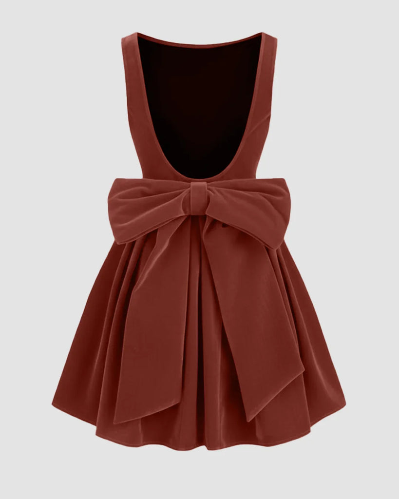 The Velvet Boat Neck Bowknot Backless Short Midi Dress In Rose is made to stand out with its luxe texture and statement back detail. The smooth velvet fabric adds instant richness, while the boat neckline gives a soft, sophisticated shape. The open back with a dramatic bowknot accent brings playful contrast to its clean front design. Crafted from a premium blend of velvet and polyester, this short midi dress feels plush, comfortable, and perfect for special occasions. Its rose tone adds a romantic yet modern edge that flatters every mood.