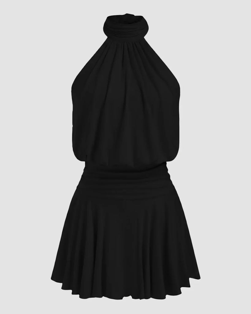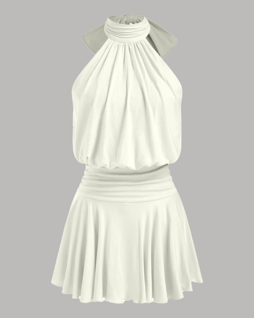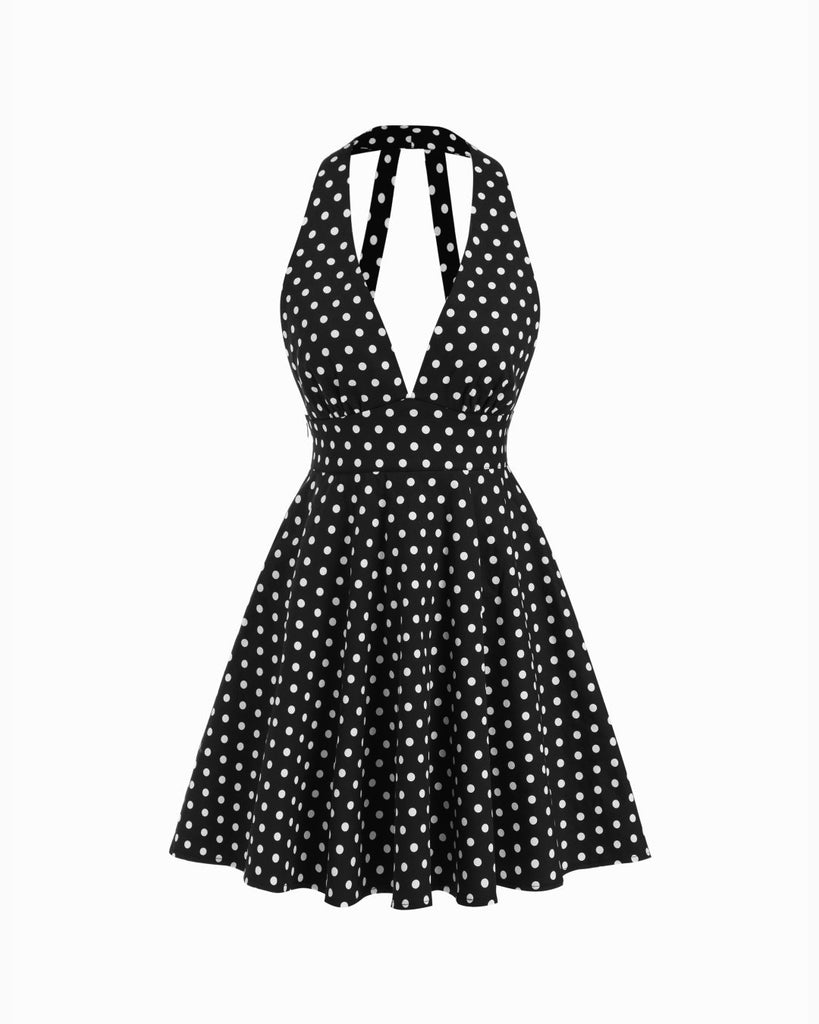 Halter Neck Polka Dot Backless Flared Mini Dress
