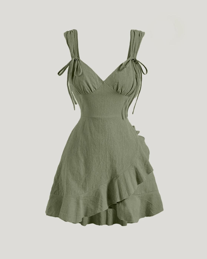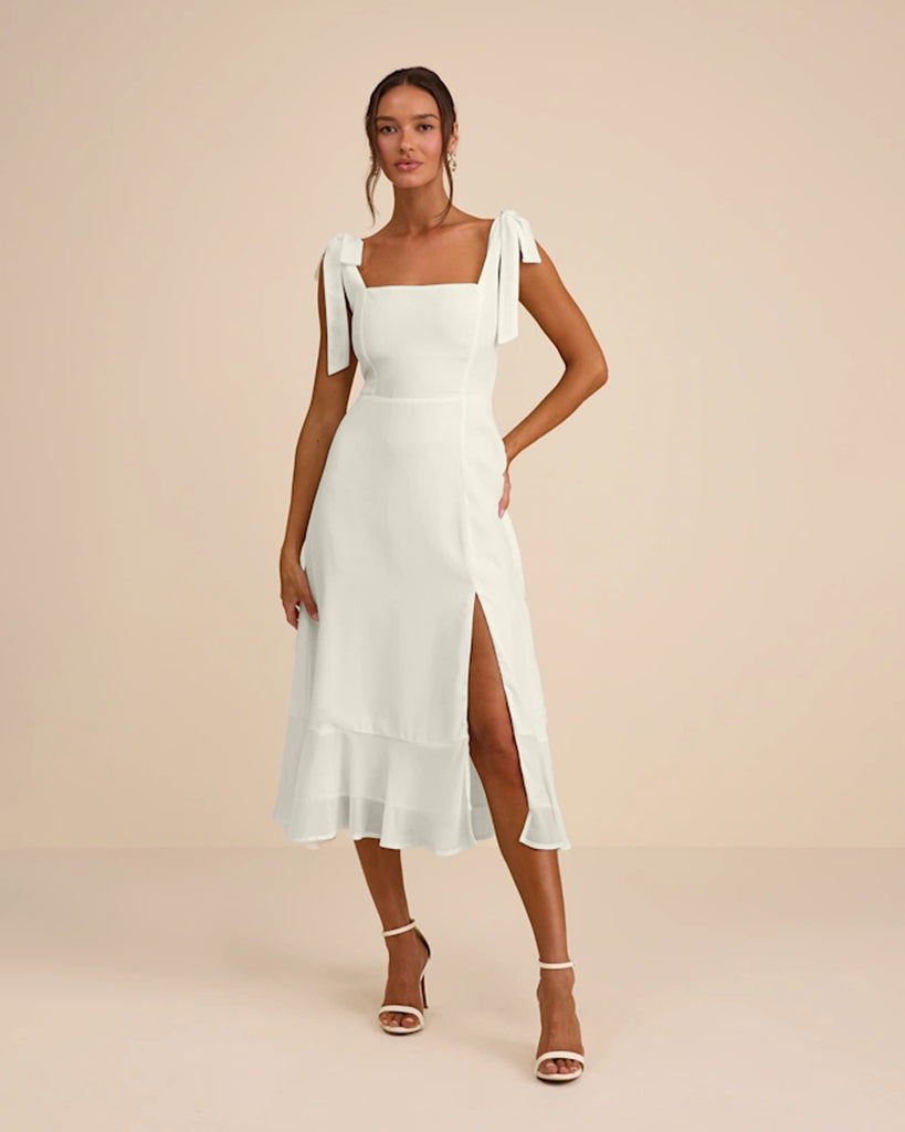 Tie-Strap Tiered Midi Dress in Beige