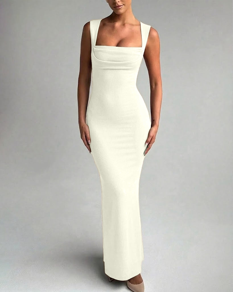 Sleeveless Square Collar Bodycon Dress in Beige