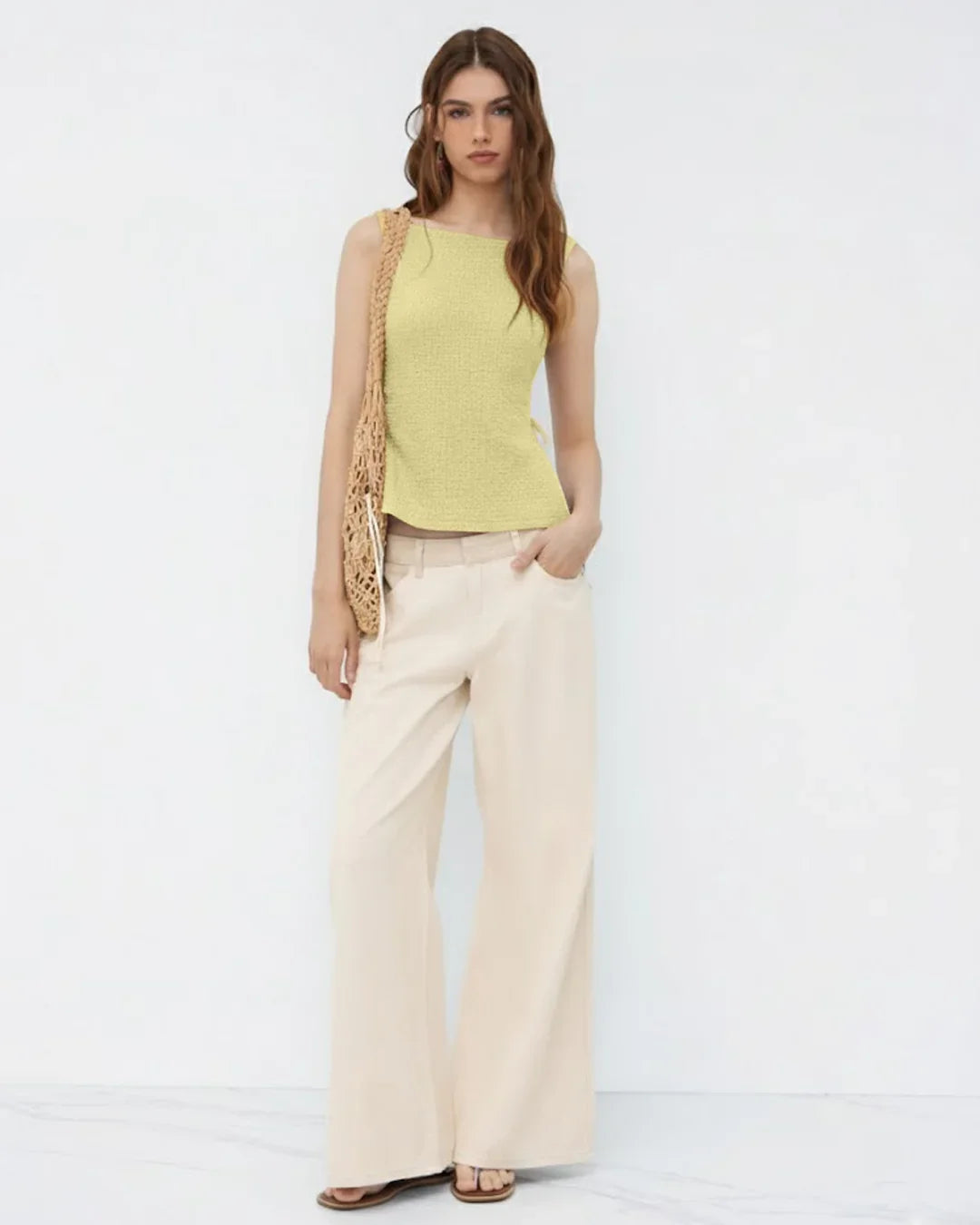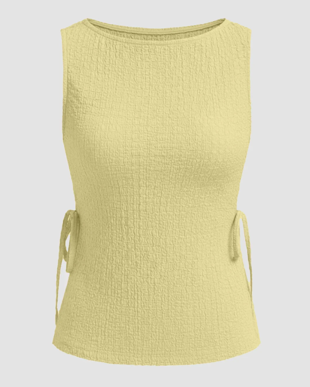 Perfect for casual days, coffee runs, or relaxed evenings, this Boat Neck Texture Knotted Split Tank Top pairs effortlessly with jeans, trousers, or skirts. It feels lightweight and comfortable while still looking polished, making it a go-to option when you want minimal effort with maximum style.