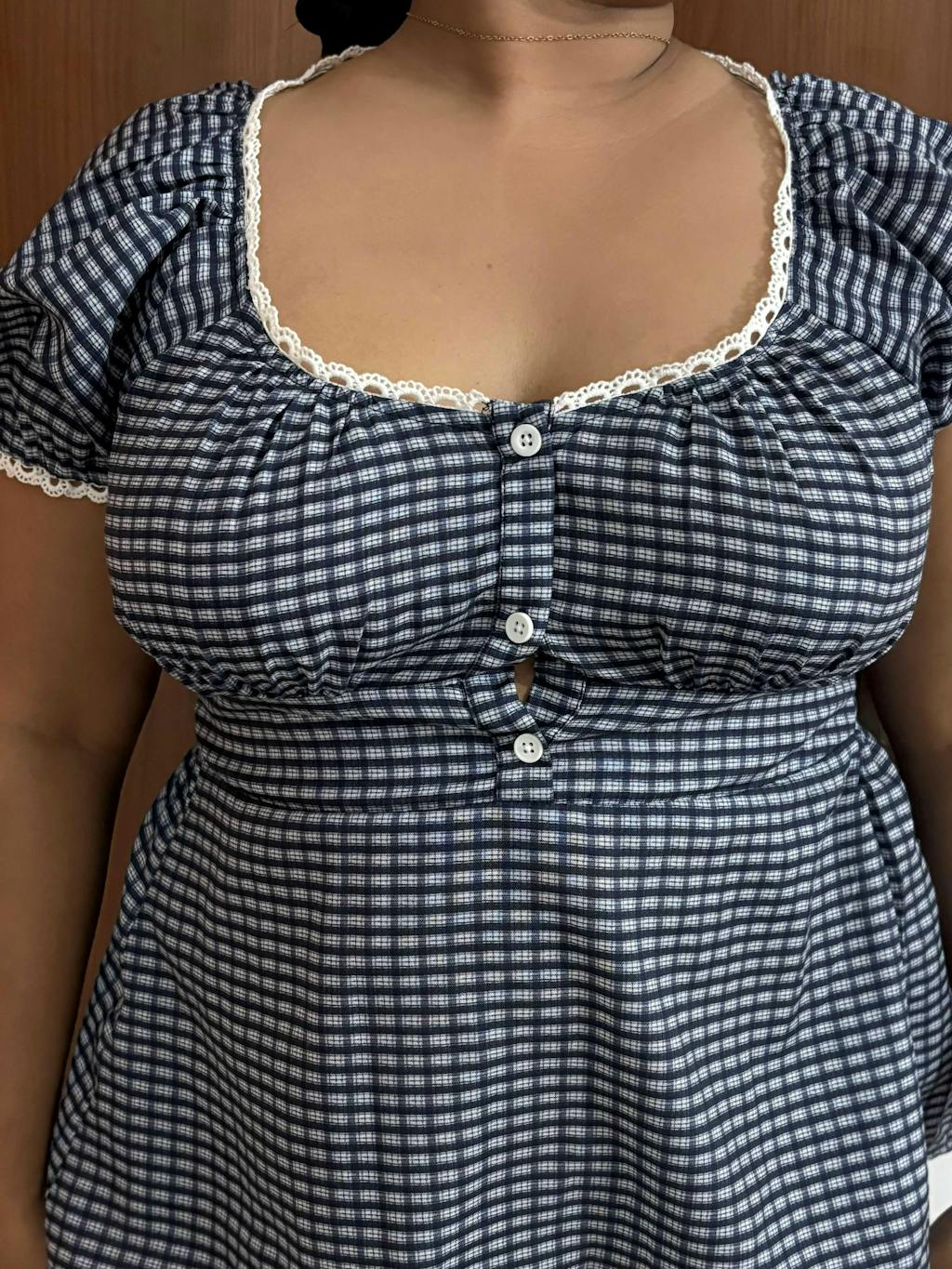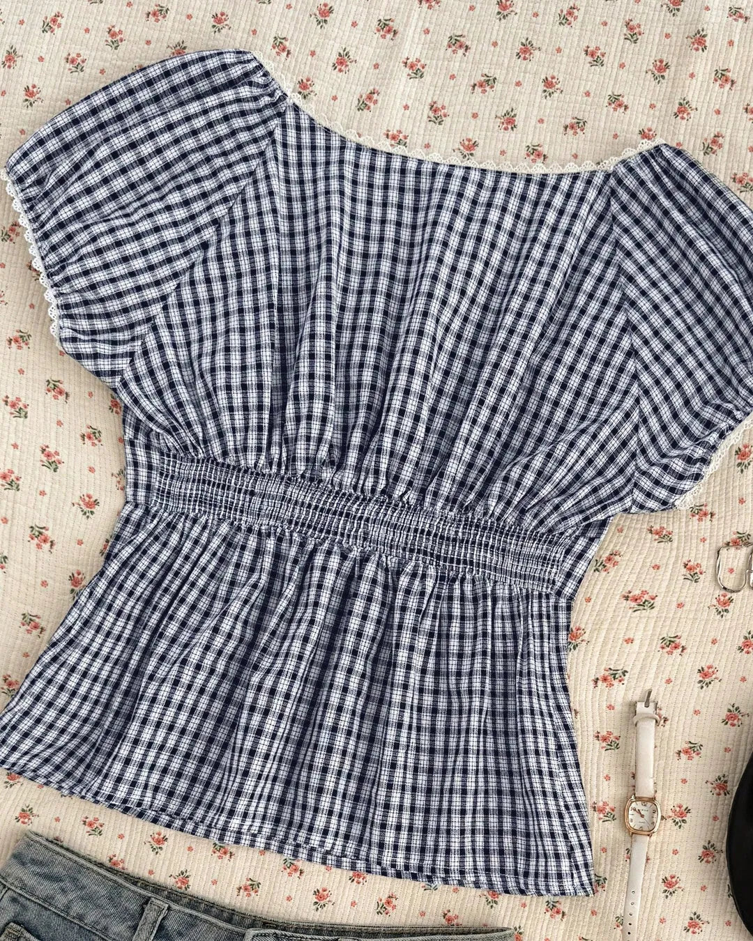 This checkered top womens style brings a soft vintage mood with an easy, everyday fit. Designed with a flattering square neckline and gentle gathers at the bust, it shapes nicely without feeling tight. The puffed short sleeves add volume and balance, while the fitted waist gives a clean, feminine silhouette. The blue and white checks keep the look fresh and timeless, making it easy to wear across seasons. Made from lightweight polyester, this checkered top womens pick feels smooth on the skin and stays comfortable through long hours.