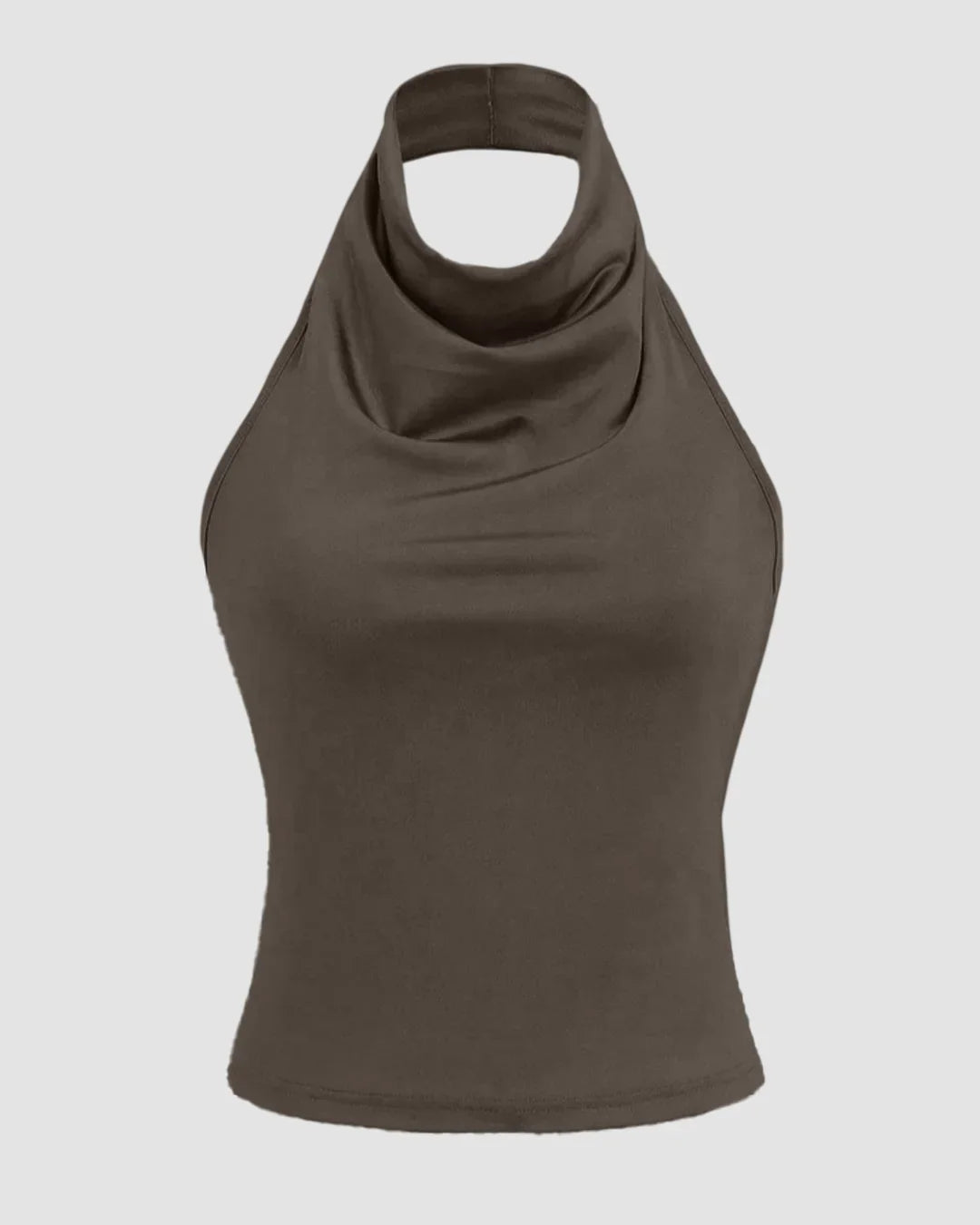 Halter Neck Slim-Fit Straight Hem Solid Sleeveless Crop Top in Brown