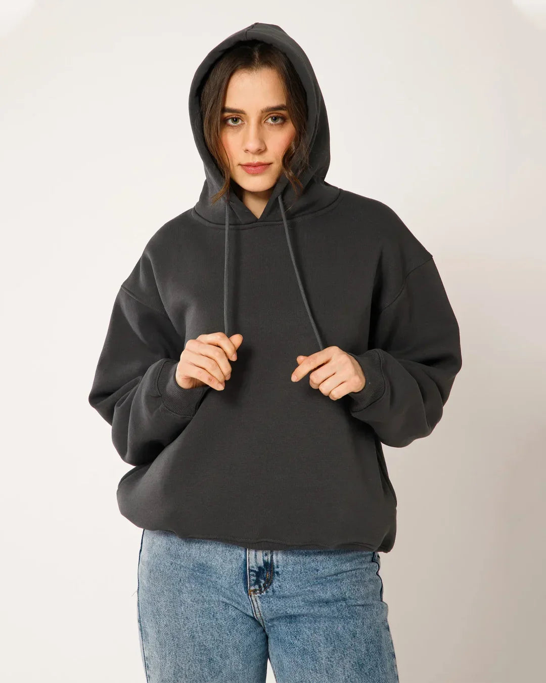 Womens Solid Drawstring Full Sleeve Hoodie in Grey is your go-to layer for laid-back days that still call for a clean, put-together look. Designed with a relaxed silhouette and adjustable drawstring detail, this hoodie blends everyday comfort with a minimal aesthetic that feels easy to style and easy to wear.