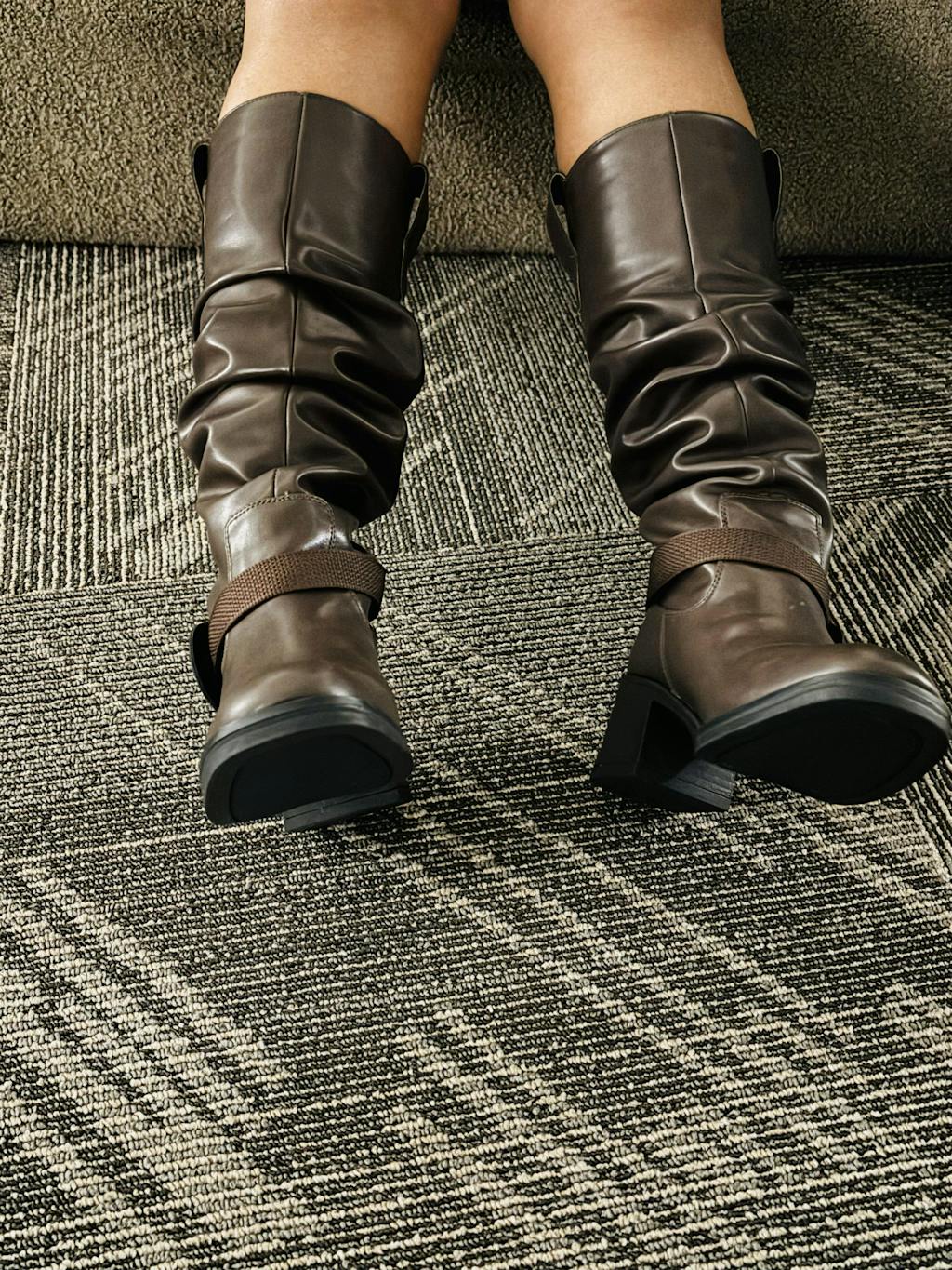 These brown color boots bring bold structure with a soft, textured finish. Designed with a classic round toe and a sturdy block heel, they create a balanced silhouette that feels both stylish and practical. The mid-calf height adds statement appeal, while the subtle buckle detail gives them an elevated edge. These brown color boots blend modern attitude with everyday wearability.