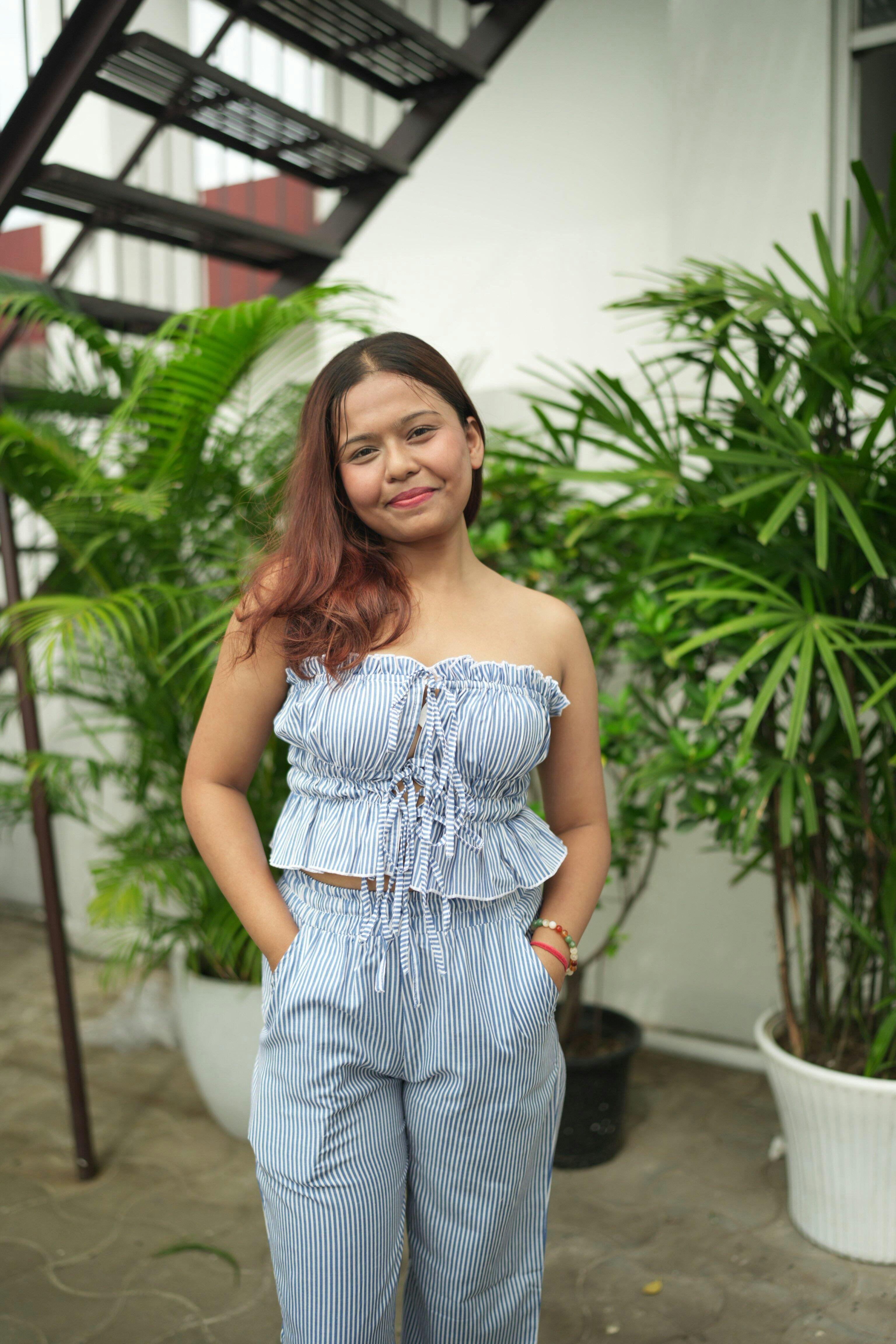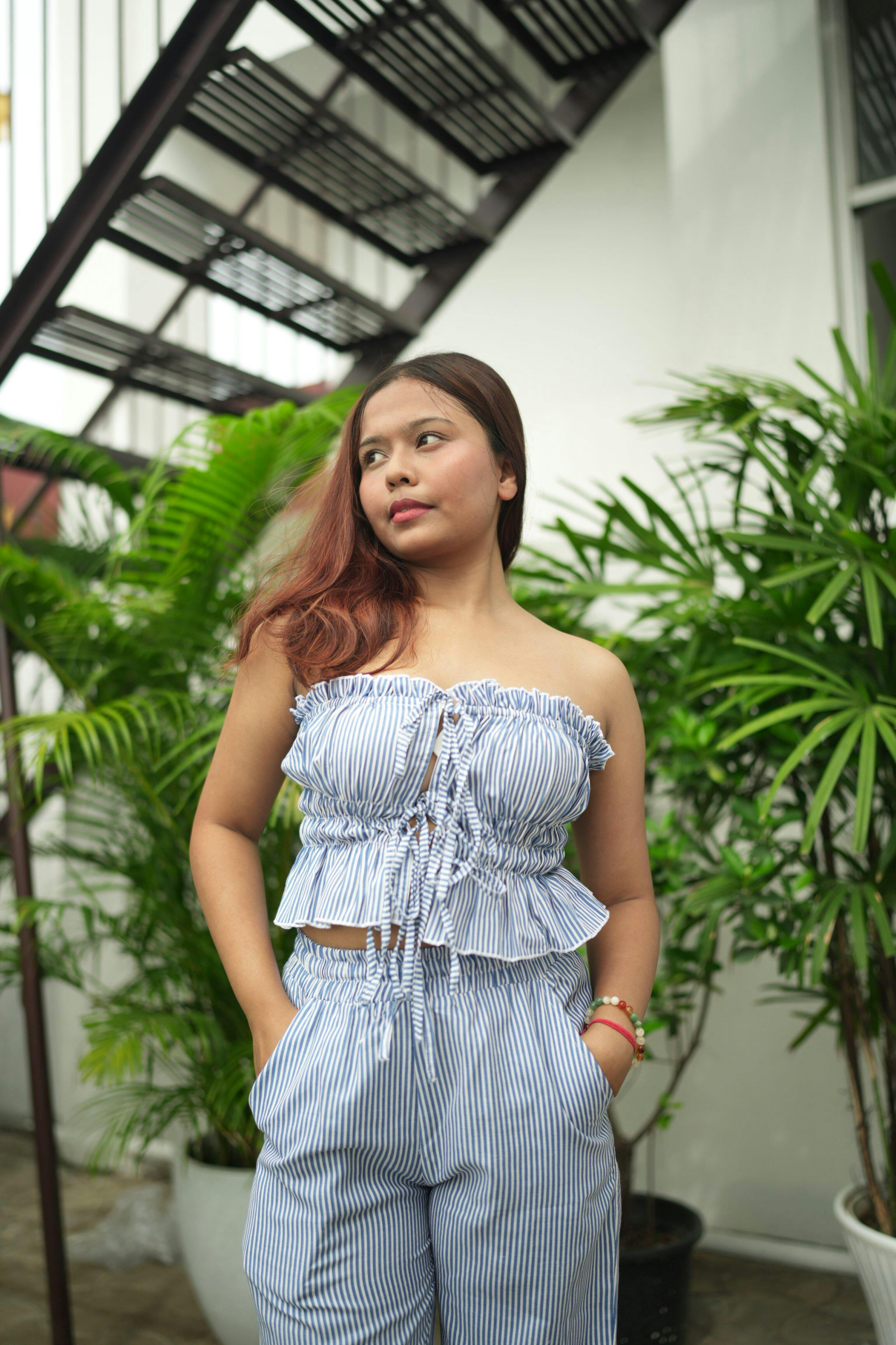 The Striped Co-ord Set With Tie Front And Ruffle Detail Top & Long Pants is a breezy yet statement-making choice for sunny days. The ruffle-edged tie-front top pairs beautifully with relaxed-fit long striped pants, making it an easy go-to for beach strolls, brunches, or weekend getaways.