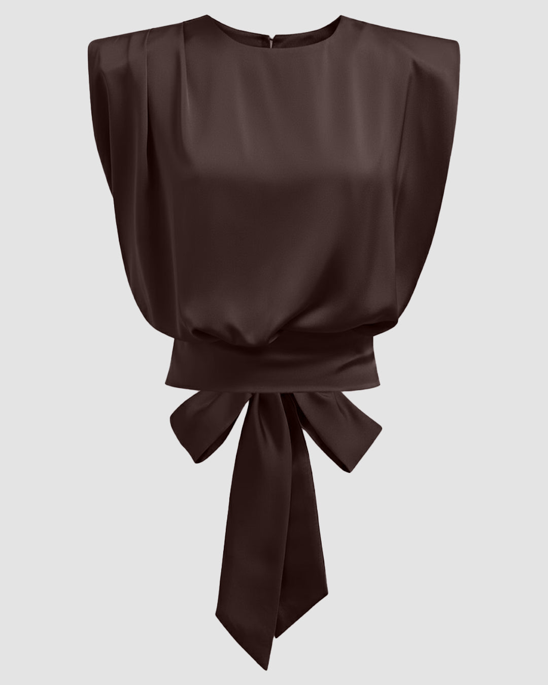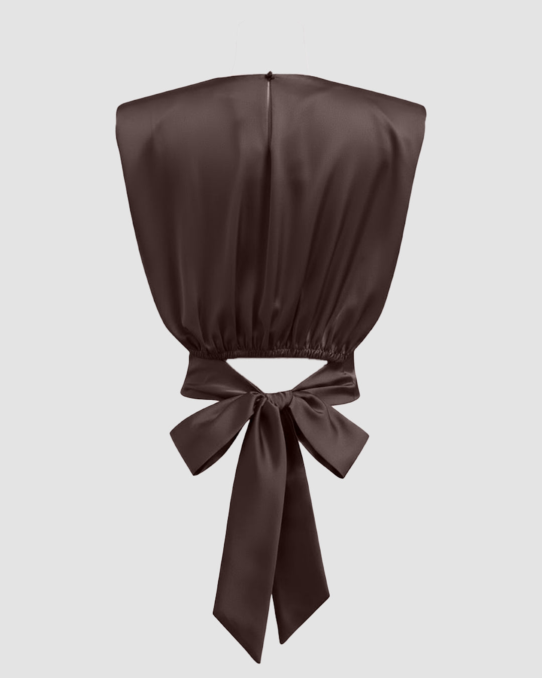 Satin Tie Back Sleeveless Top in Coffee brings soft elegance with a clean, modern feel. Designed in a smooth satin finish, these sleeveless top features a relaxed drape on the front and a statement tie-back detail that adds subtle drama from behind. The coffee-brown shade keeps it versatile while still feeling elevated, making it easy to dress up or down. This sleeveless top in coffee is perfect for days when you want something polished but effortless, whether you are styling it for work plans or evening outings.