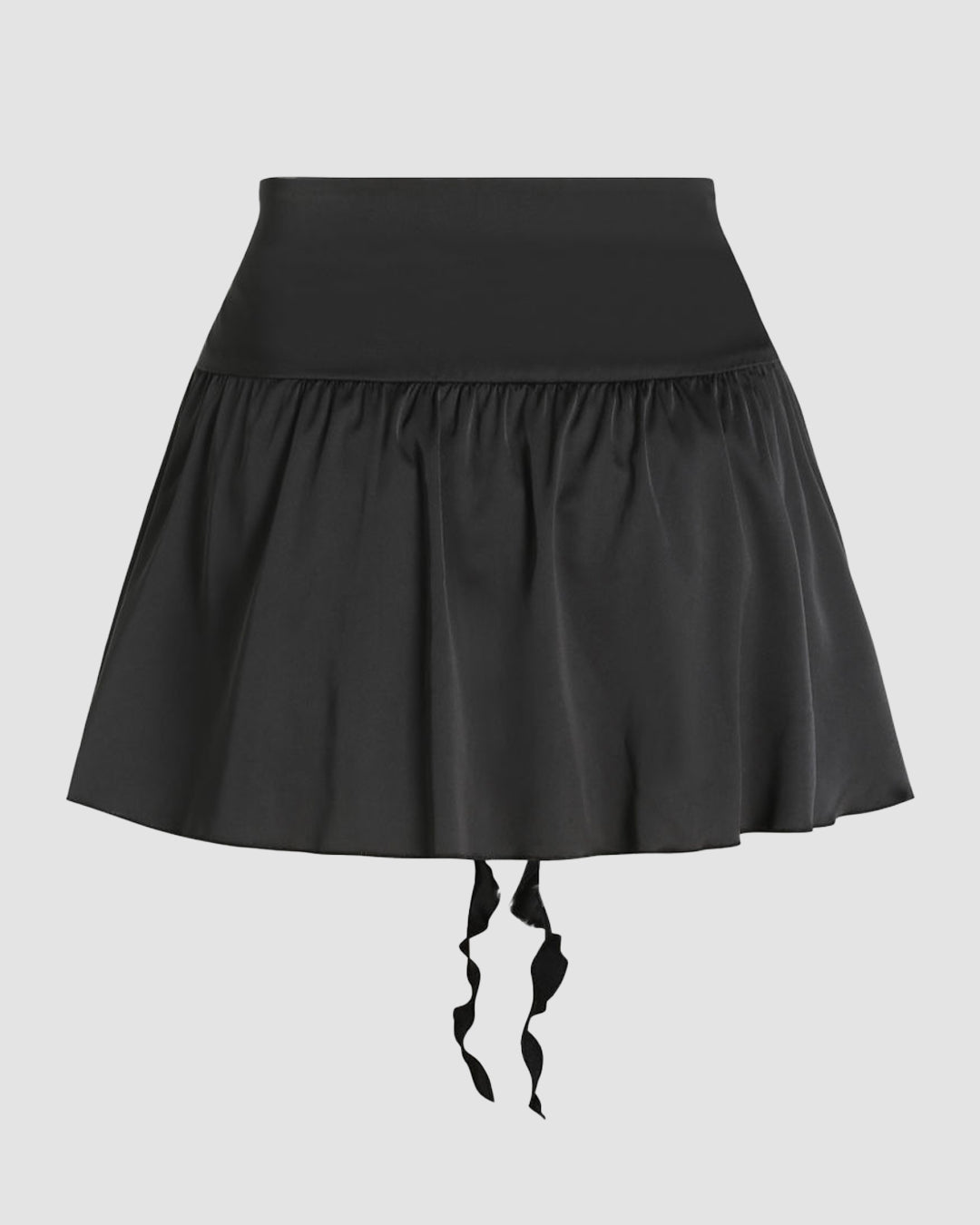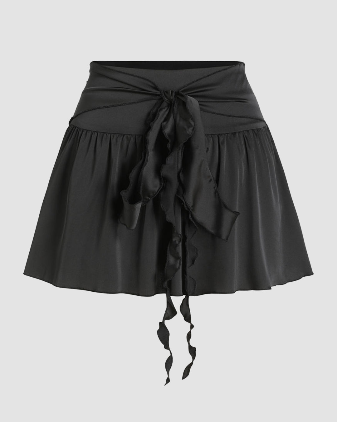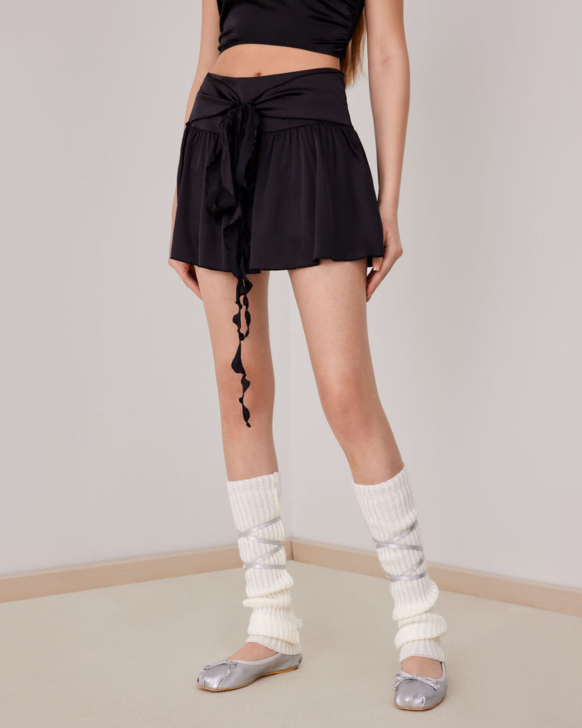 Knotted Ruffle High Waist Mini Skirt in Black comes with a soft, flowy shape that gives an easy and stylish look. This Mini Skirt in Black features a high-waist fit, a front knotted detail, and light ruffle edges that add movement. The smooth fabric blend makes it comfortable for long wear, while the short length keeps it playful and modern. The clean black colour makes it simple to match with almost any top.