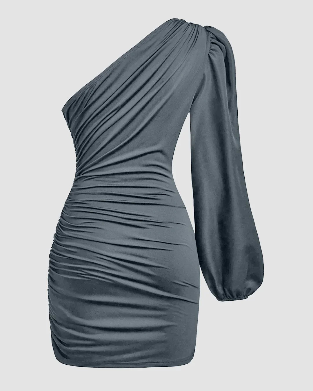One-Shoulder Ruched Bodycon Asymmetrical Mini Dress in Grey