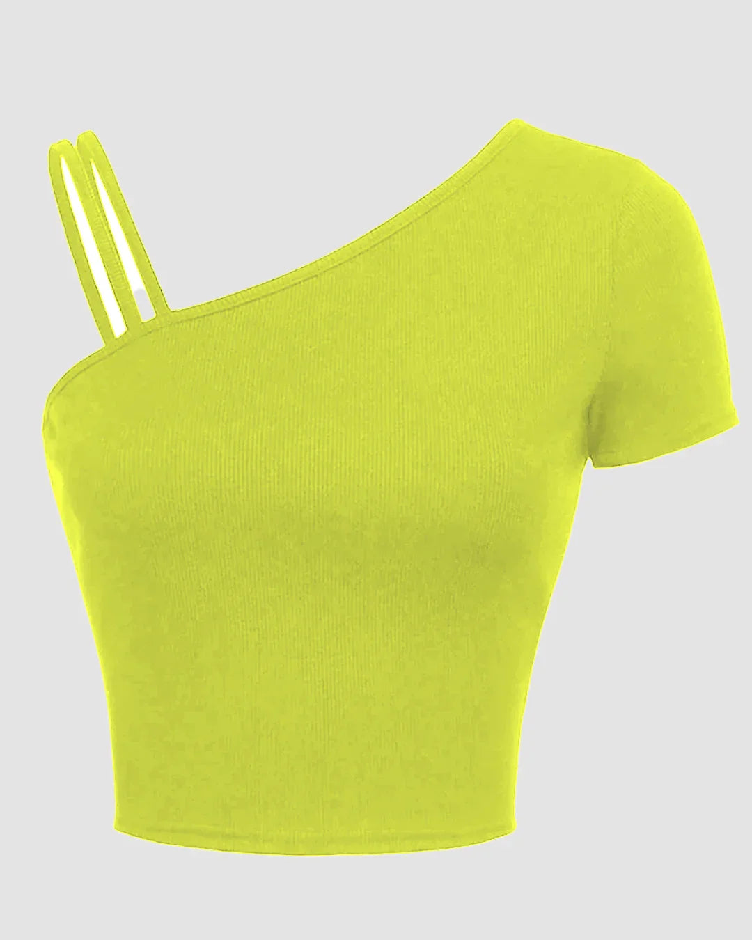 One Shoulder Strap Detail Asymmetrical Top in Neon