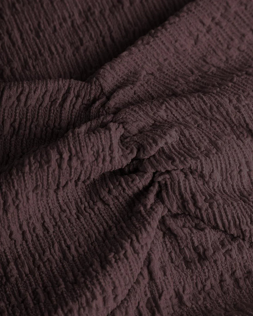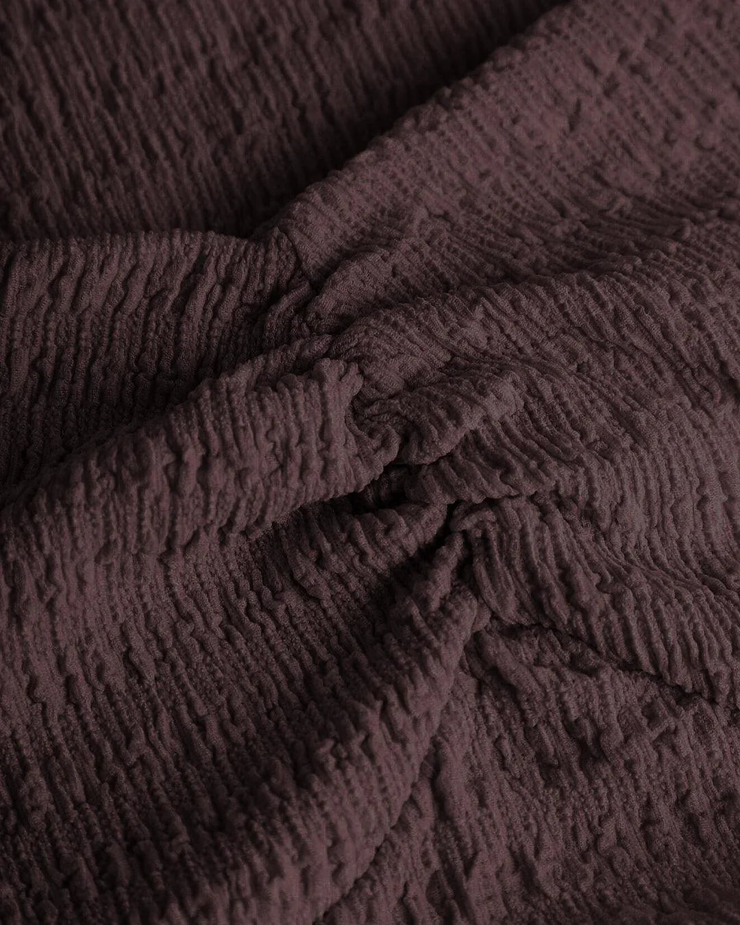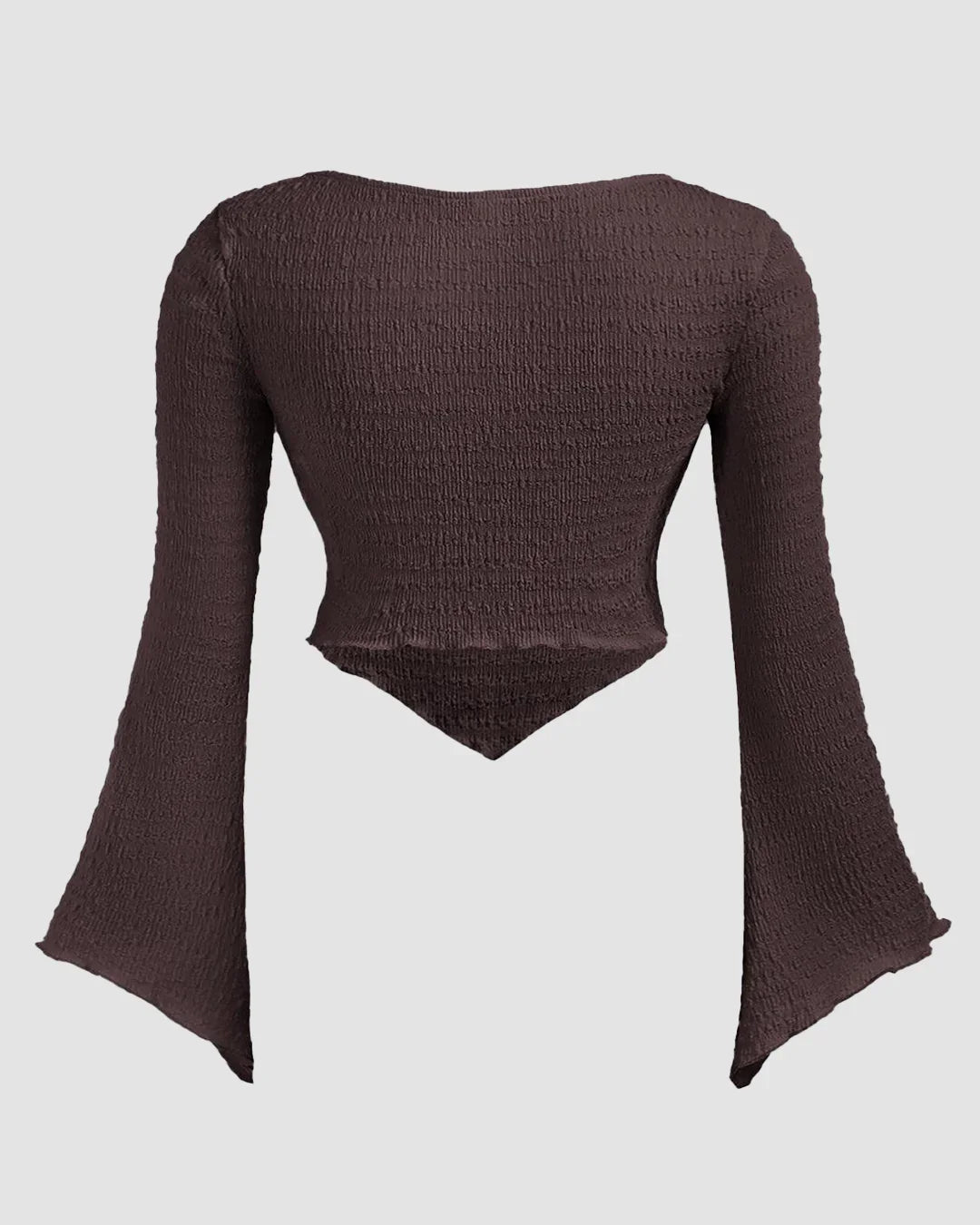 Solid Color Textured Heart Neck Flare Sleeve Casual Long Sleeve Top In Brown Curve & Plus