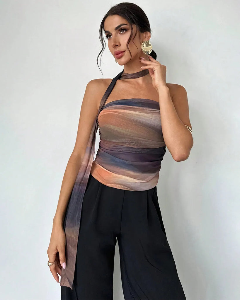Tie Dye Sheer Mesh Slit Sleeveless Maxi Dress