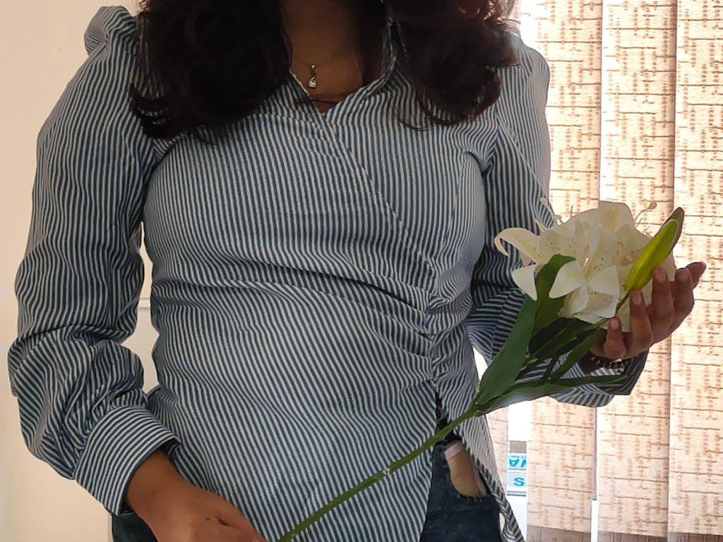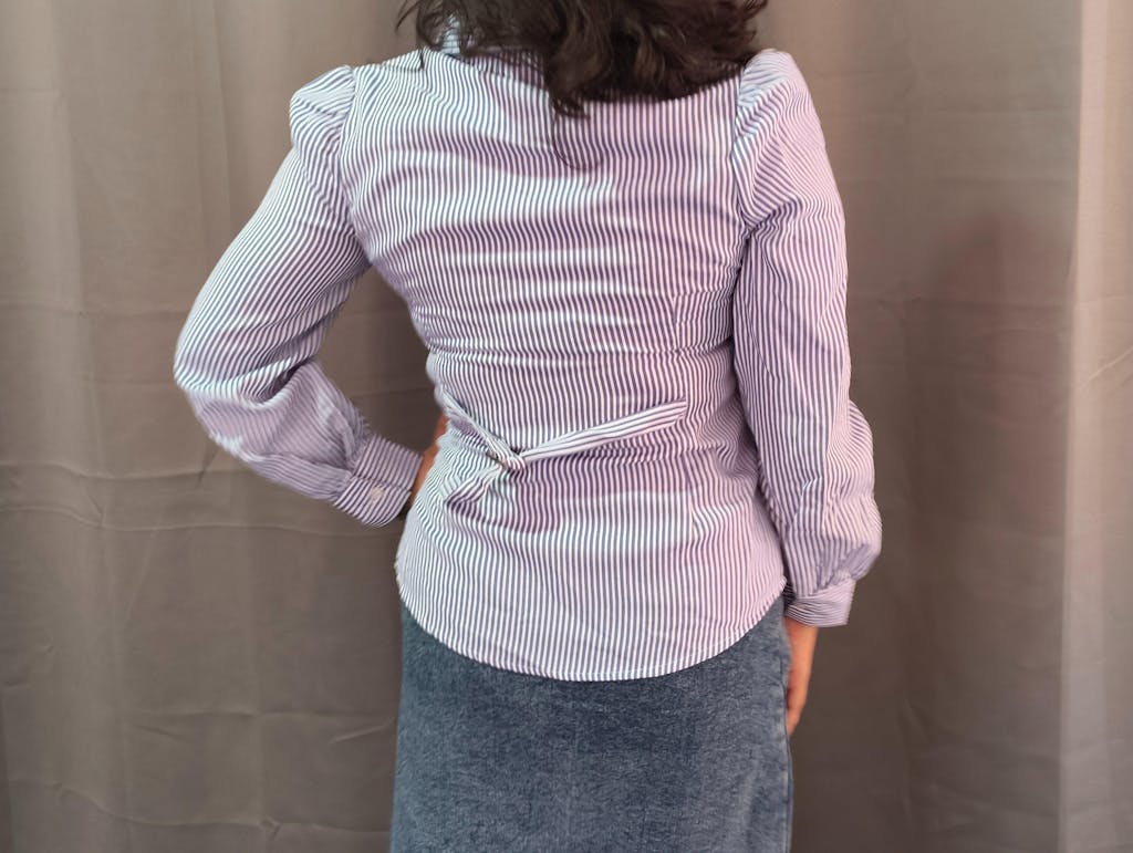 This dark blue formal shirt brings a sharp, elegant look with a modern wrap-style silhouette. Designed with a structured collared neckline and a softly wrapped front, it defines the waist while keeping the overall fit clean and polished. The subtle drape across the bodice adds depth without looking bulky, while the full sleeves with gentle volume give it a refined finish. The deep navy blue shade keeps it classic and work-ready, making this dark blue formal shirt a strong choice for polished wardrobes. Made from smooth polyester, it feels light on the skin and holds its shape well through the day.