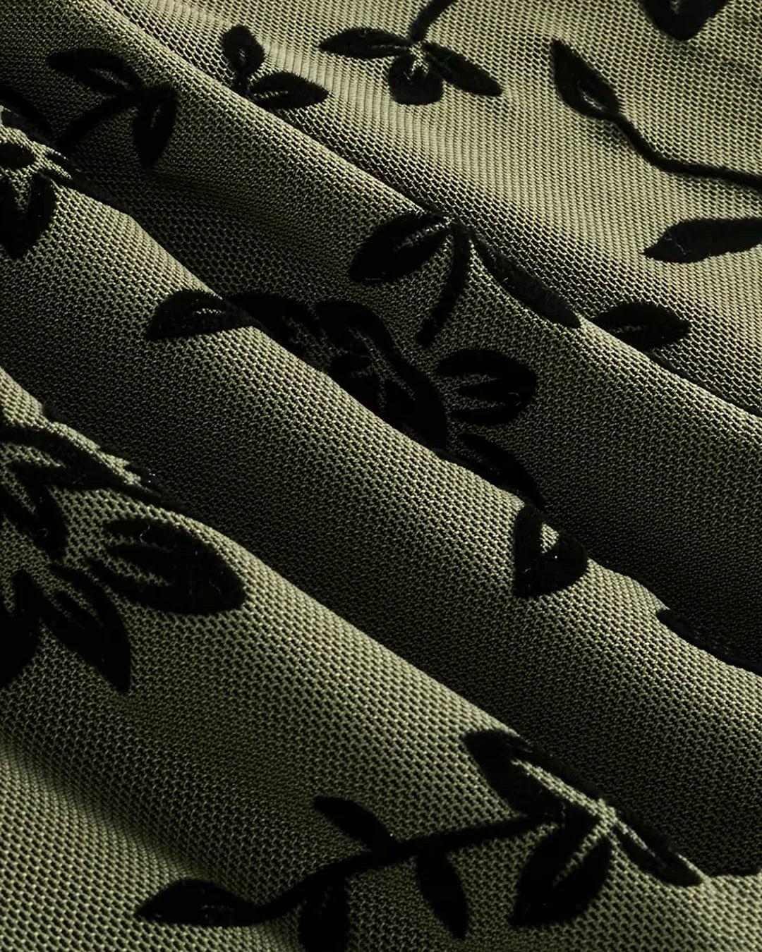 Floral Mesh V-Neck Short Sleeve A-Line Mini Dress in Green is made for easy, pretty dressing with a soft statement feel. This short A-line dress features a flattering V-neckline that frames the neckline nicely, while the floral mesh fabric adds a light and feminine touch. The A-line silhouette gently flares out, giving you a comfortable fit that moves well and feels effortless. With its short sleeves and mini length, this short A-line dress works perfectly for days when you want to look put-together without trying too hard.