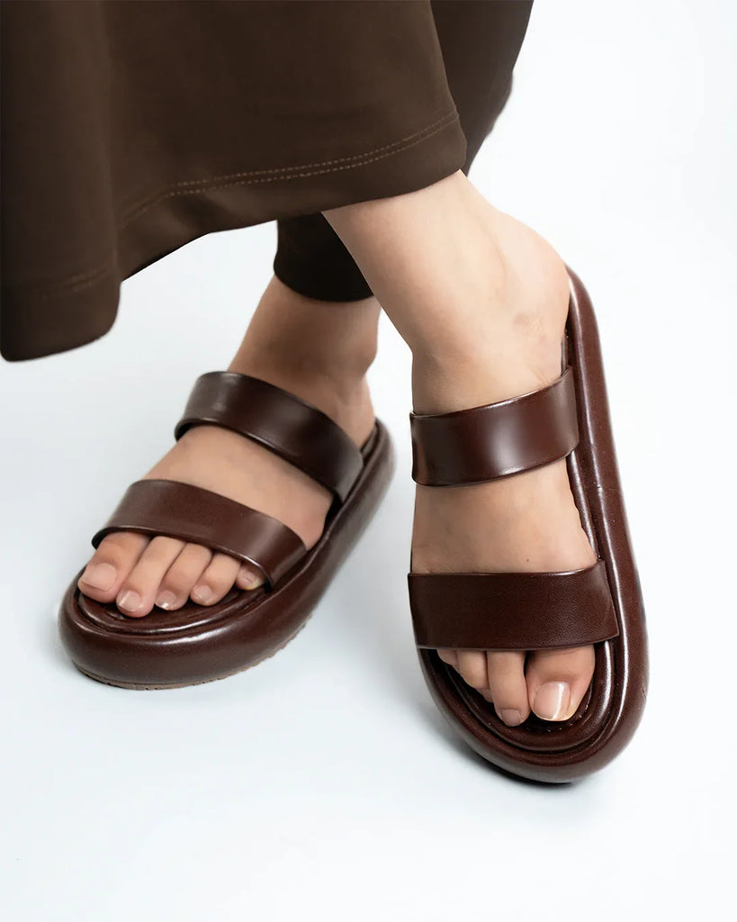Brown & Beige Colorblocked Buckle Strap Sandals