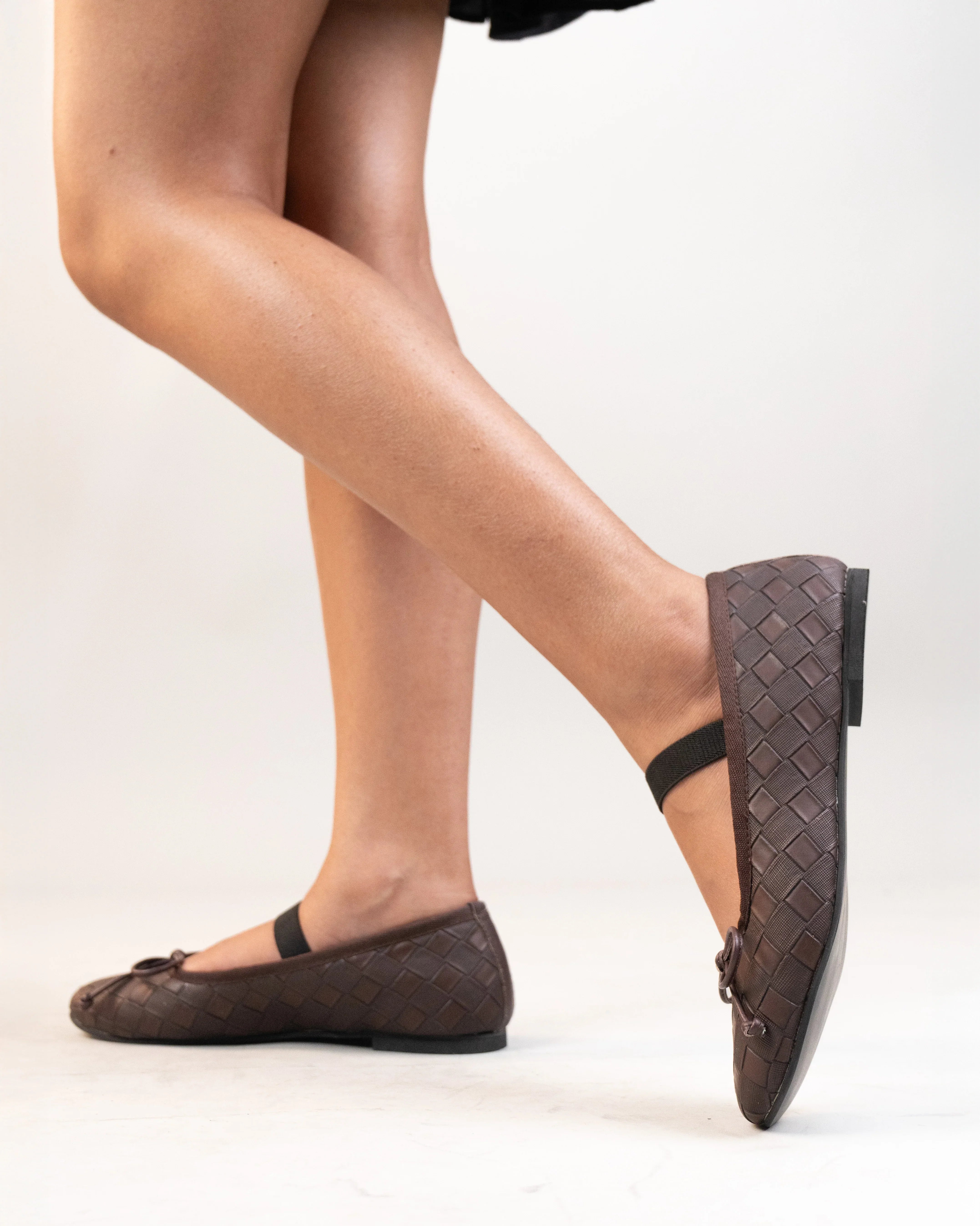 Mary Jane Cute Bow Round Toe Woven Ballerinas In Brown