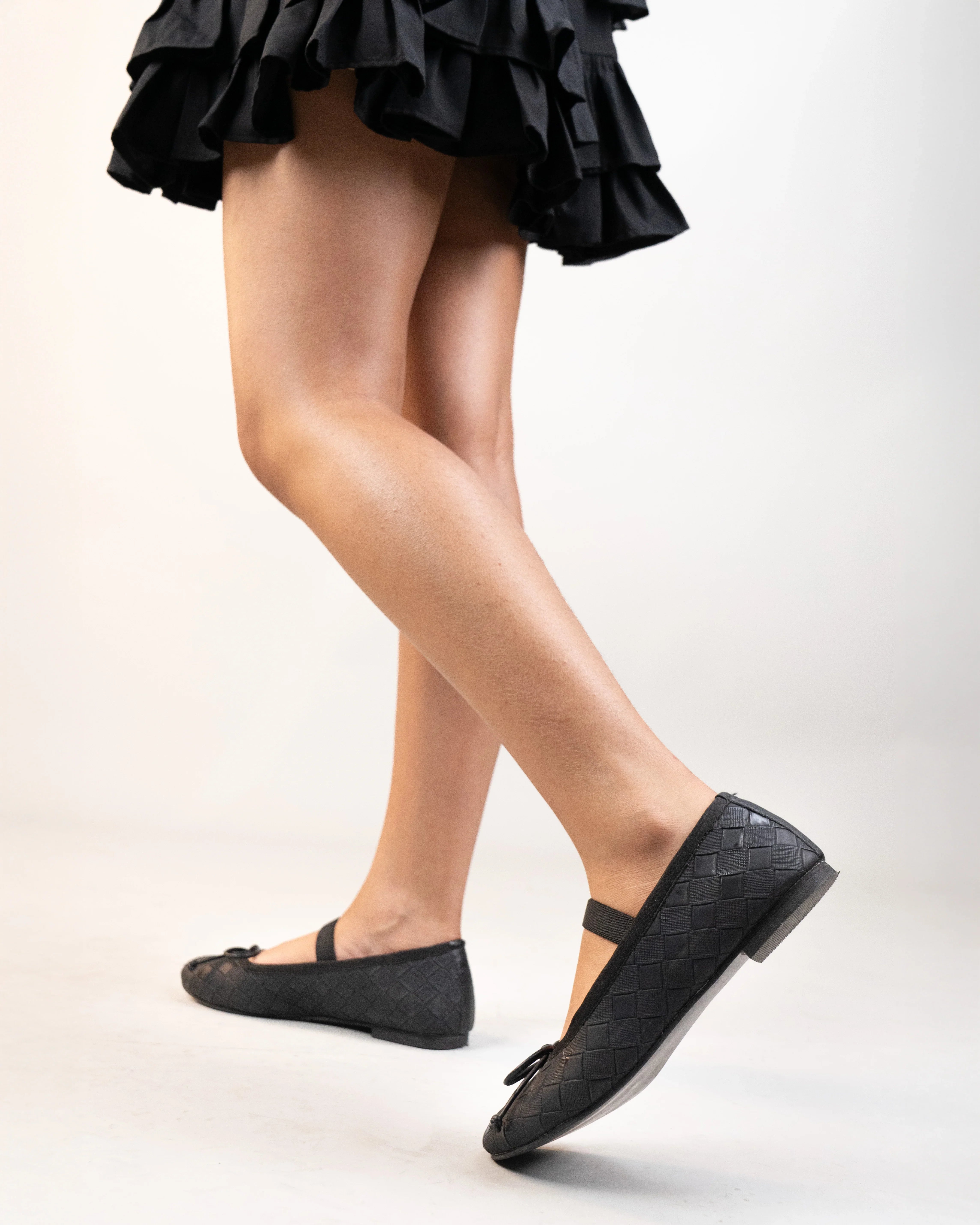 Mary Jane Cute Bow Round Toe Woven Ballerinas In Black