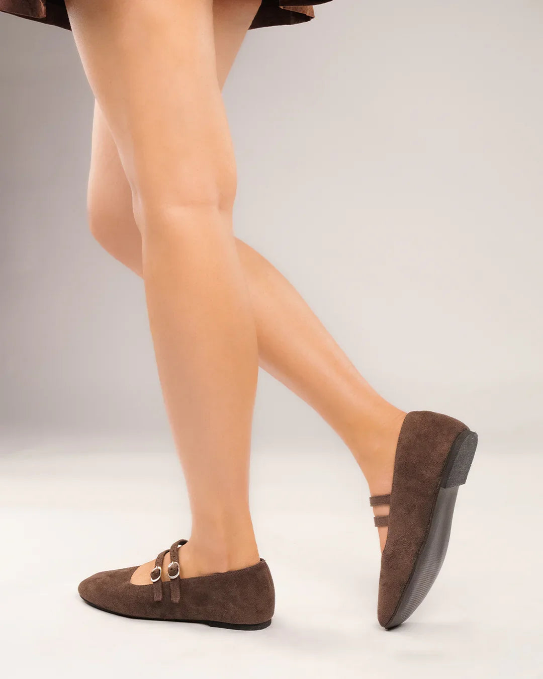 Square Toe Mary Jane Ballet Flats in Brown are the perfect mix of cute and polished. Designed with a clean square toe and a slim strap across the front, these Square Toe Mary Jane Ballet Flats give a soft vintage vibe with a modern edge. The rich brown tone keeps them easy to style, while the flat sole makes them super comfortable for daily wear. These Square Toe Mary Jane Ballet Flats feel light on the feet and simple in the best way.