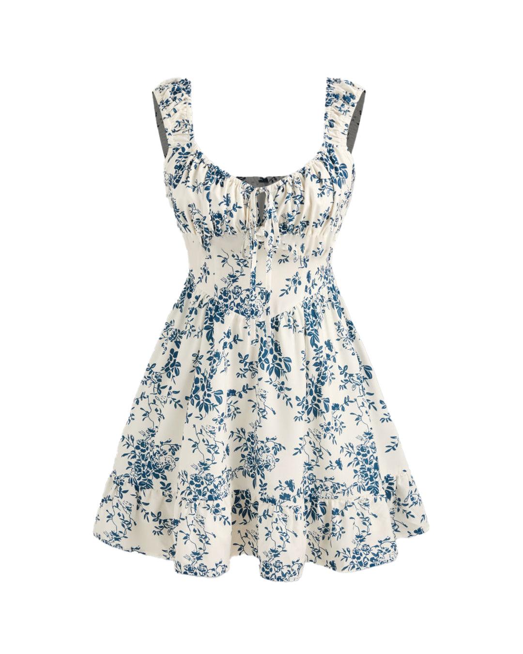 Sweetheart Neckline Floral Knotted Mini Dress is your new go-to for soft, flirty charm. Designed with a ruched bust, tie-front detail, and a flowy hemline, this mini dress flatters every curve while keeping things effortless. The blue floral print over a cream base brings a vintage-inspired freshness, perfect for casual brunches or weekend getaways.