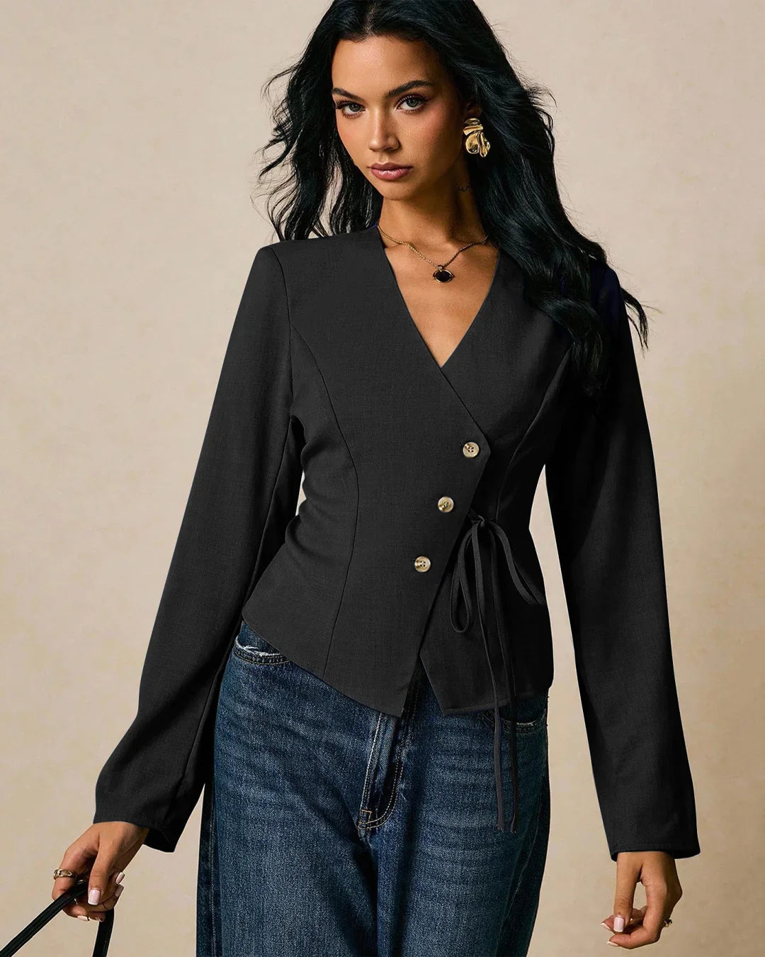 The Black Button Front Full Sleeve Fitted Top is a clean, polished essentially made for everyday styling with a put-together feel. Designed with a flattering fitted silhouette, these top hugs the body comfortably while still allowing easy movement. The button-front detail adds a classic touch, making it suitable for both casual and slightly elevated looks.