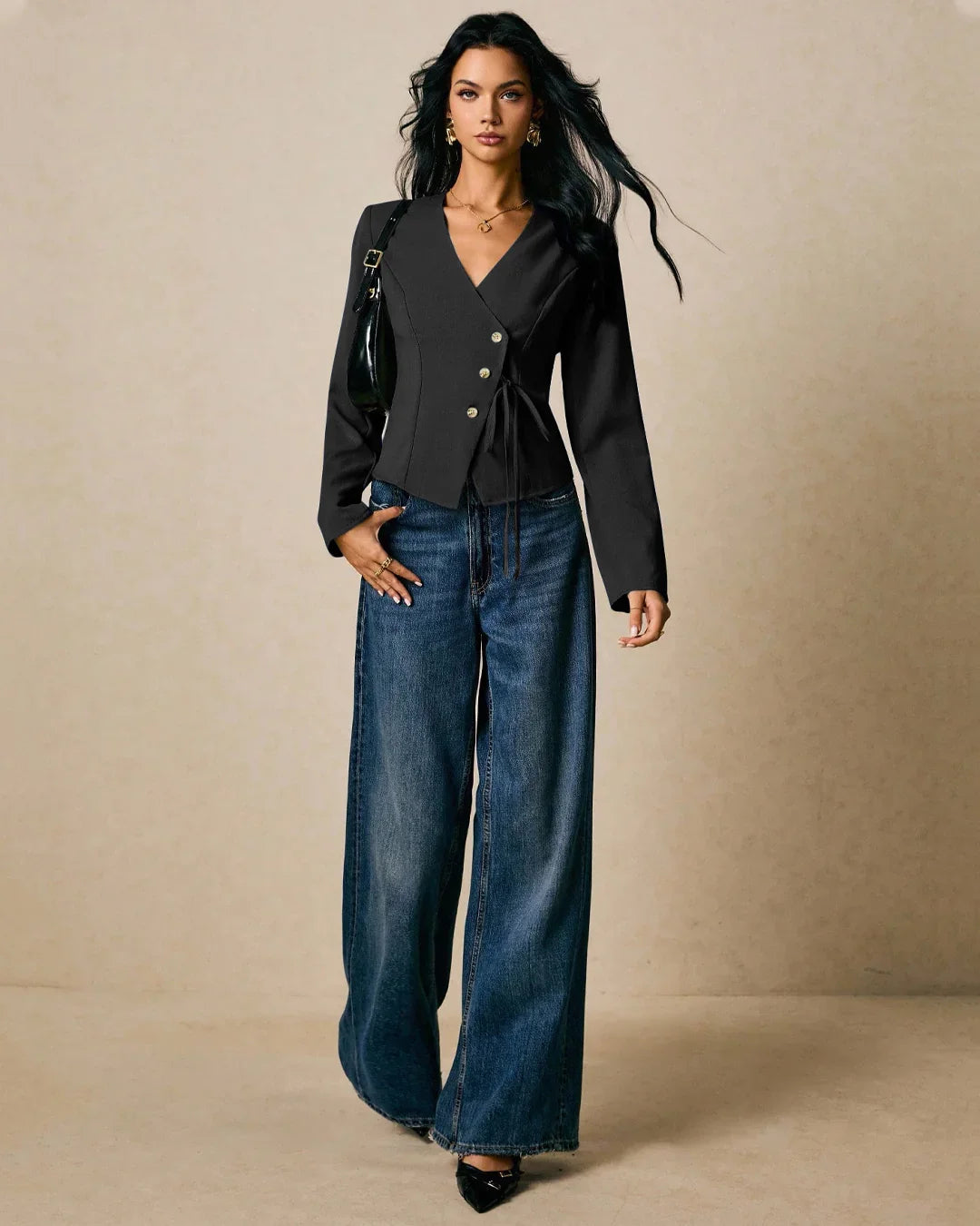 Tuck it into tailored trousers with minimal accessories for a smart casual look.