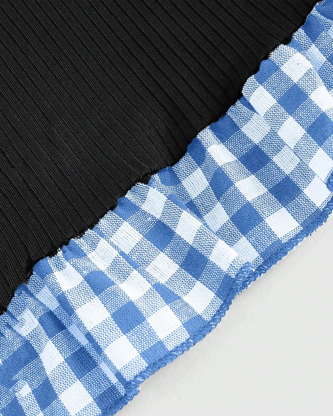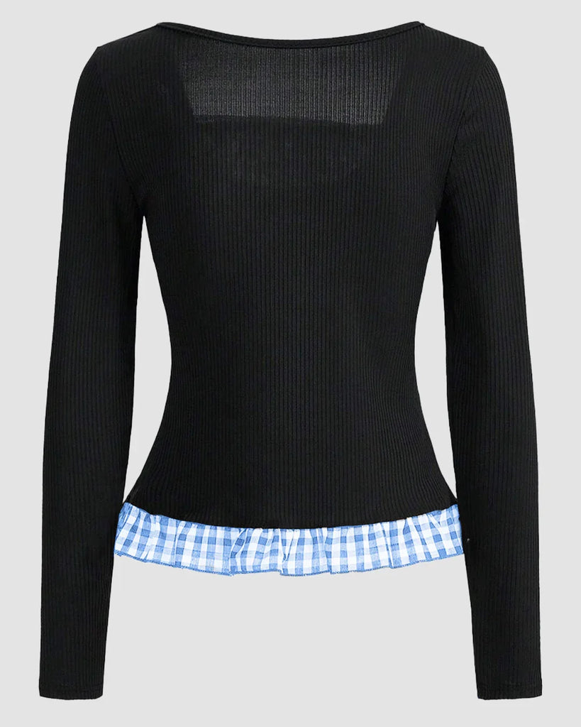 Black Contrast Gingham Trim Round Neck Full Sleeve Top
