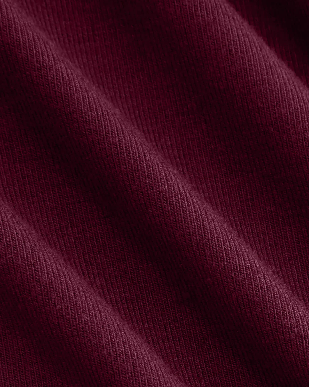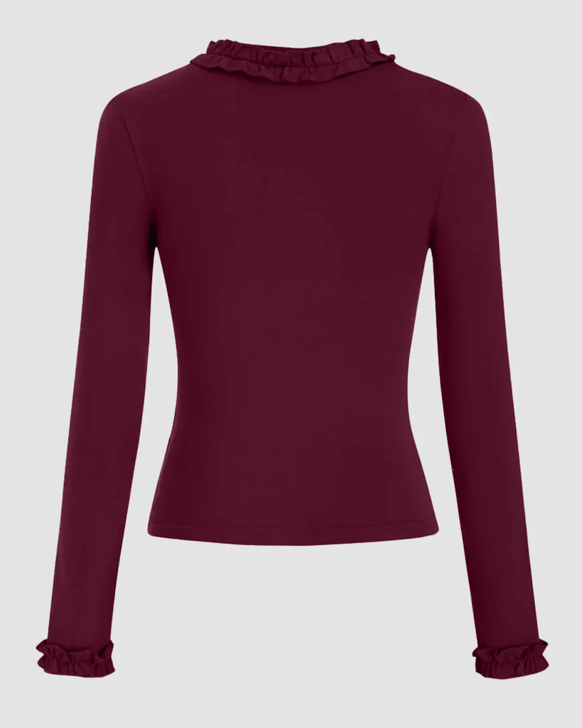 Round Neckline Long Sleeve Ruffle Trim Top in Burgundy
