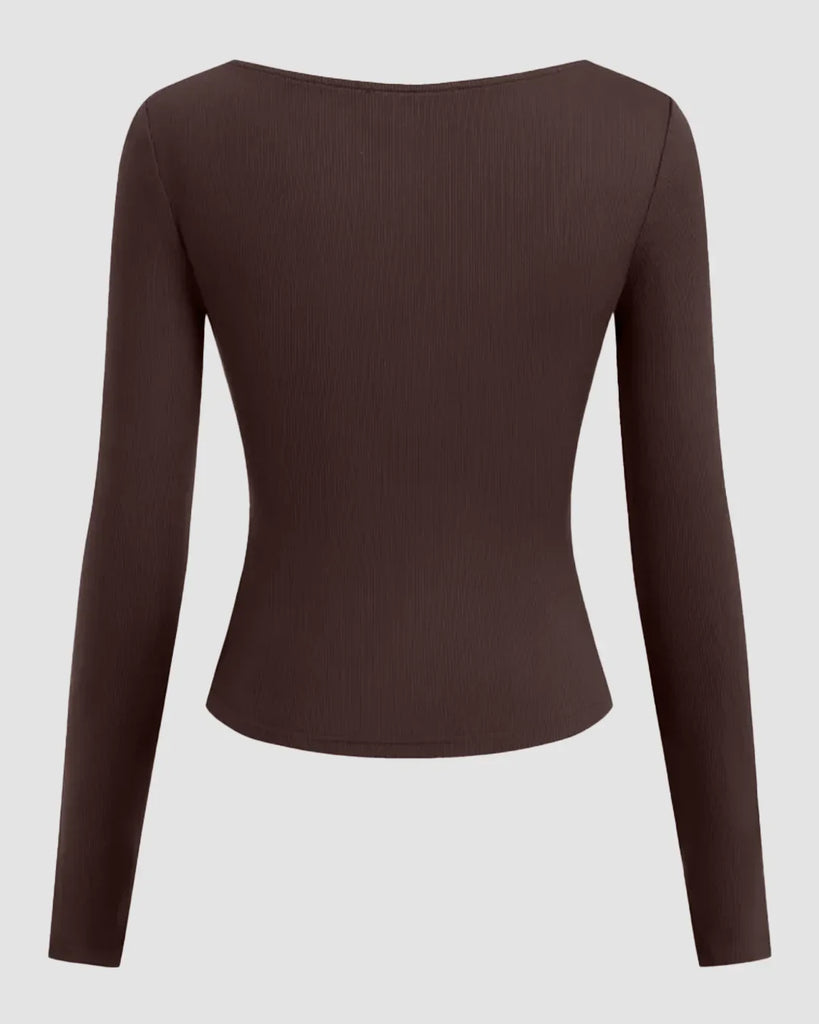 You can wear this piece for coffee runs, casual plans or layering under jackets. It sits well on the body, feels light and adds a clean, polished touch to simple bottoms. This Long Sleeve Top in Brown also works great with denim, trousers or skirts when you want a quick, put-together look.