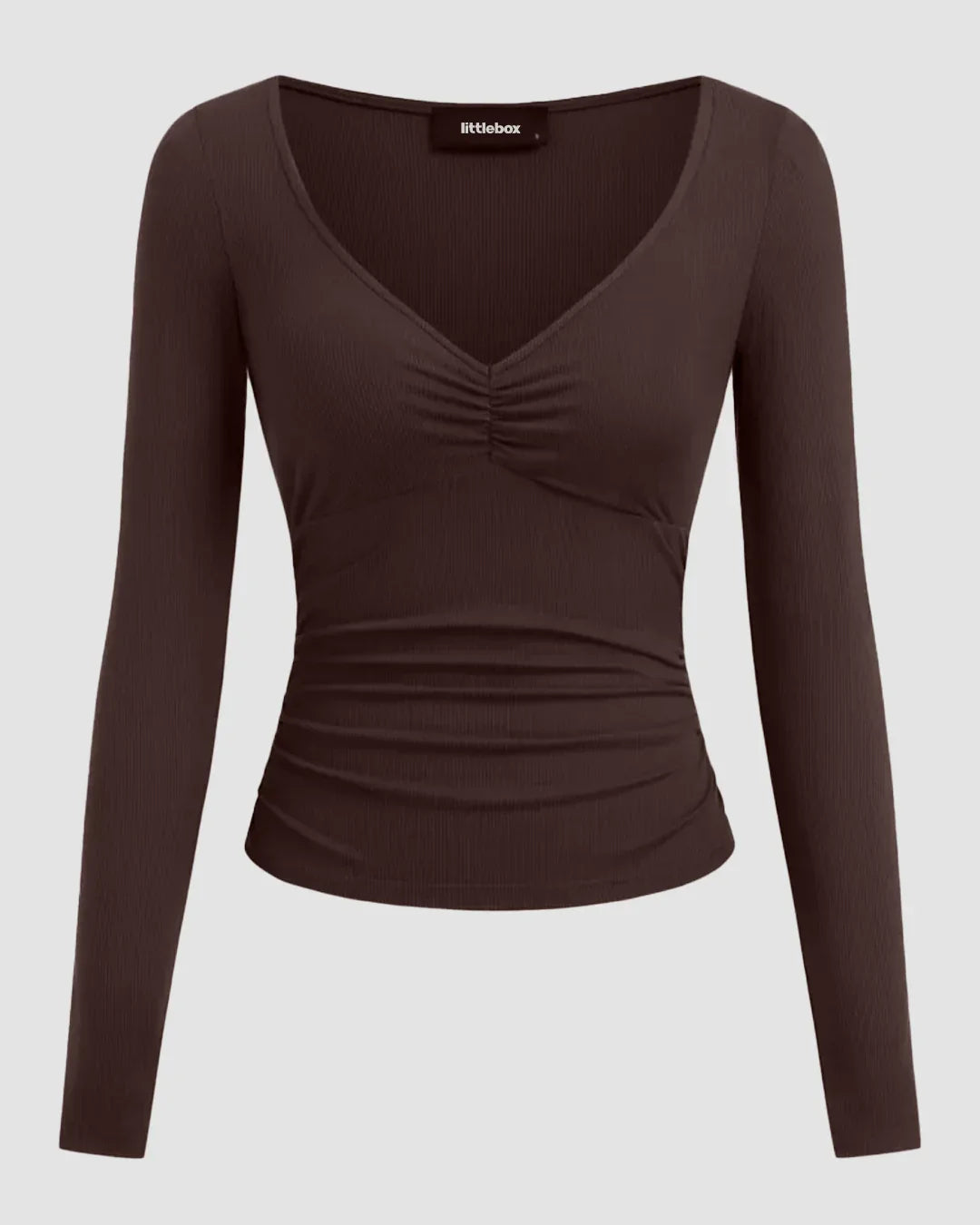 V-neck Ruched Long Sleeve Top in Brown gives a soft, easy shape with its fitted look and clean neckline. The ruched detail adds a natural curve, while the ribbed feel keeps it comfy for long hours. The stretch in the fabric makes this Long Sleeve Top in Brown smooth, breathable and perfect for everyday wear.