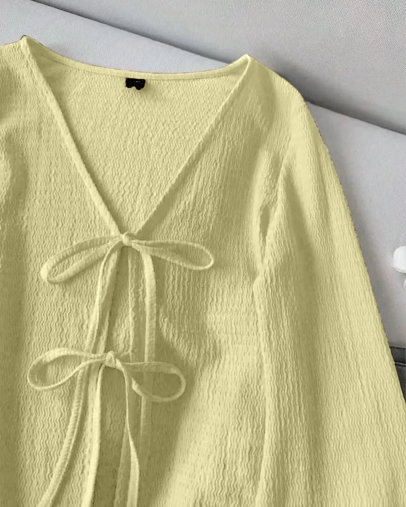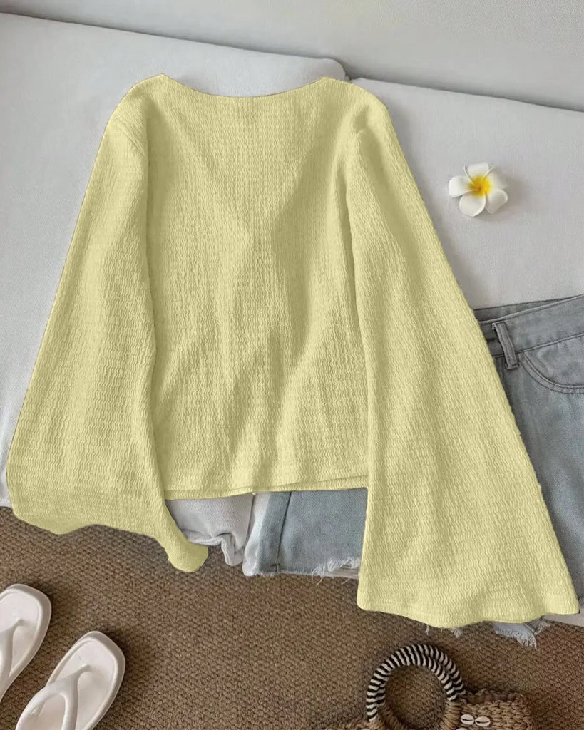 Vanilla Tie Front Full Sleeve Flared Hem Top