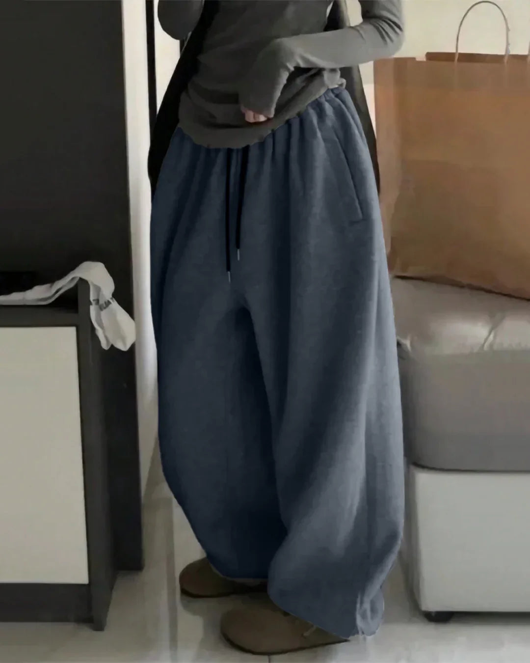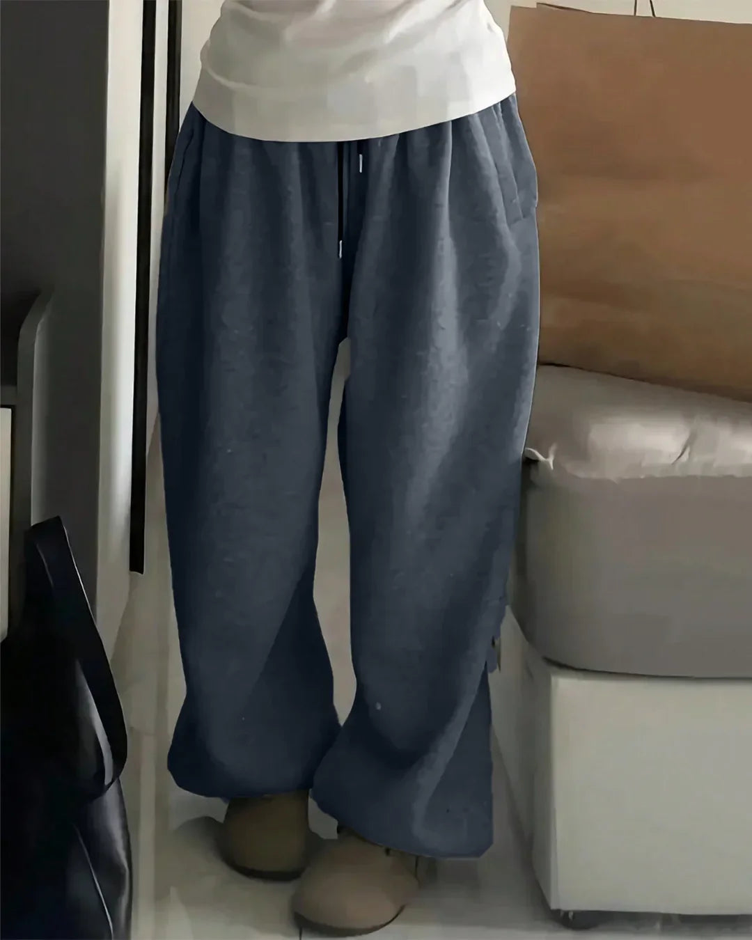 These Sweatpants in Blueberry are made for easy, relaxed days. They come with a soft elastic waist, a smooth drawstring and wide legs that give a comfy loose fit. The light blueberry shade makes the look fresh while keeping things simple and wearable.