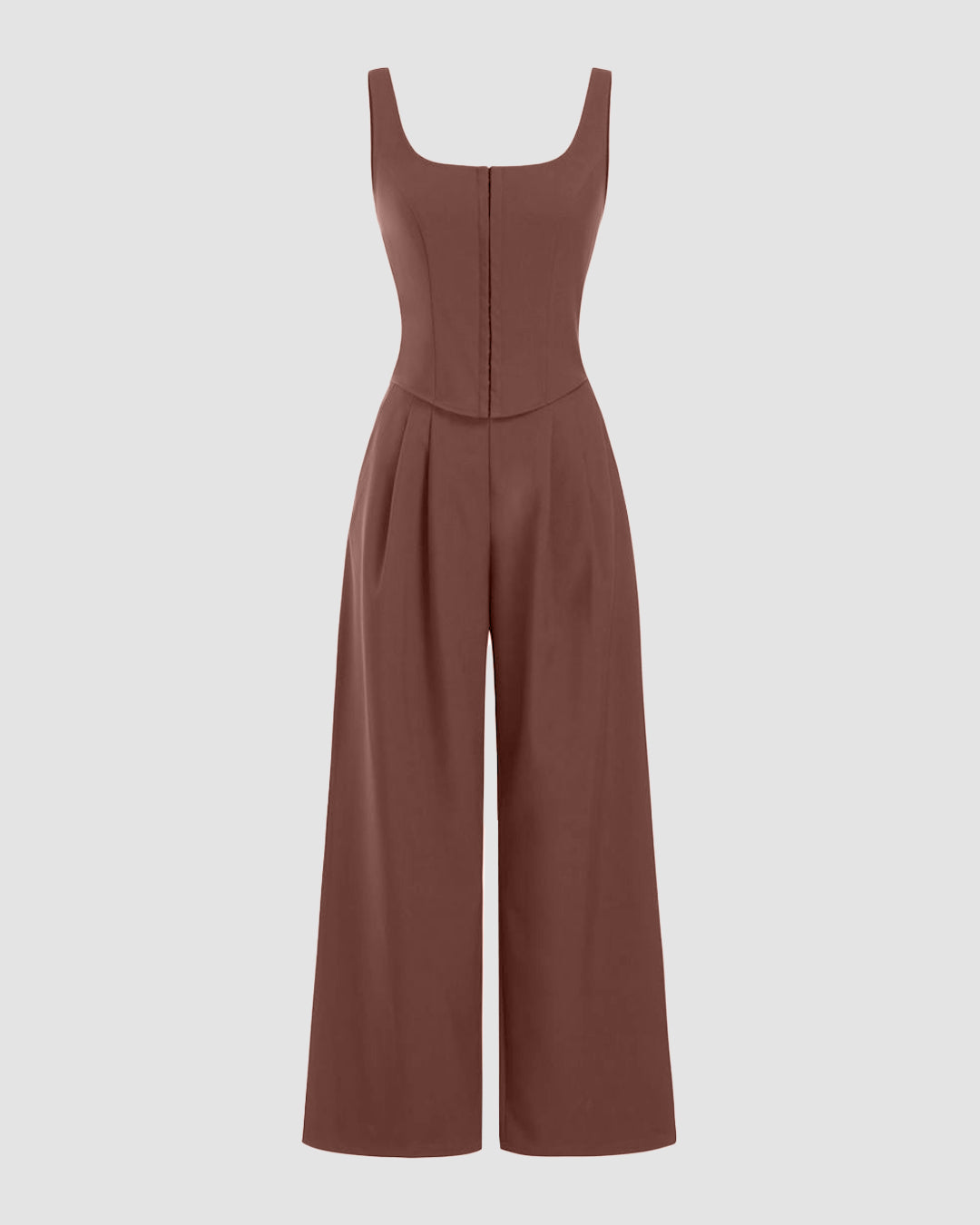 Square Neck Wide Leg Jumpsuit in Brown