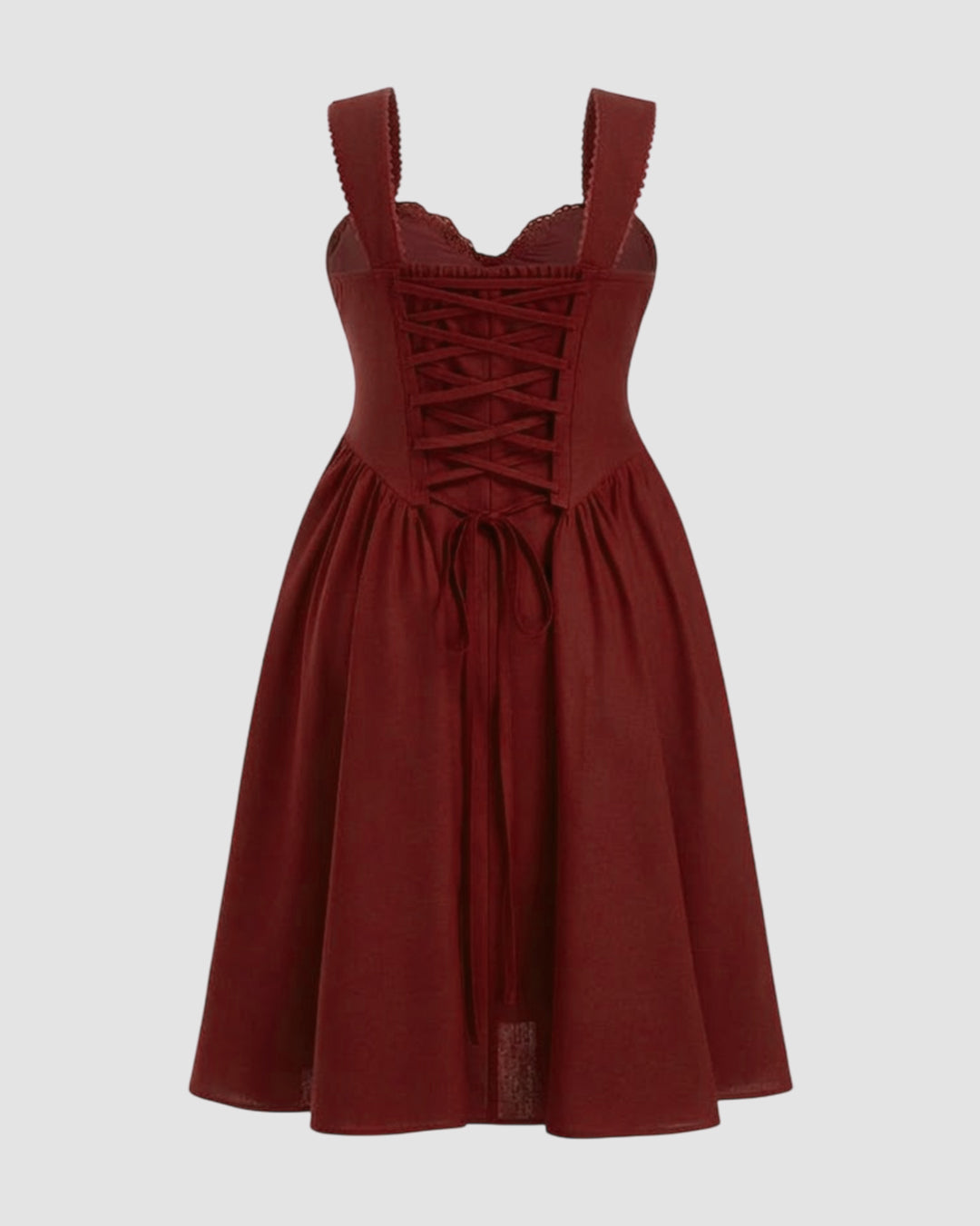 Crafted from a soft blend of polyester, viscose, and twill, this sweetheart neck ruffled lace up dress provides breathability while maintaining a polished look. The rich merlot red tone adds depth and sophistication, making it perfect for special occasions, dinner dates, or festive gatherings. Style this sweetheart neck ruffled lace up dress when you want a confident, elegant, and effortlessly stylish outfit.