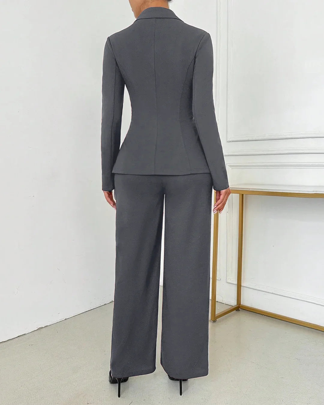 High-Waisted Trousers & Fitted Blazer Set in Dark Grey