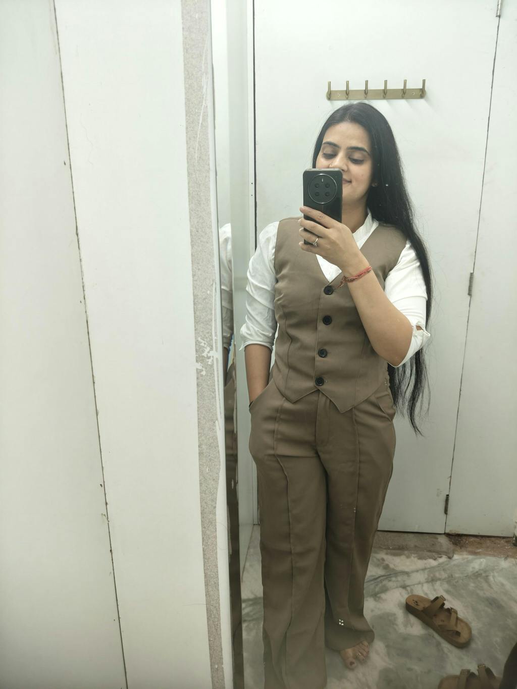 We are introducing the Matching Set of Vest Coat and Trousers in Cappuccino, a soft, sleek, and bossy look for brunch, work events, or weekend plans. This vest and trouser set features a cropped sleeveless vest with a button front and drawstring waist, paired with high-rise wide-leg trousers. The cappuccino tone adds a touch of calm luxury, making this vest and trouser set perfect for both chill and dressy moods.