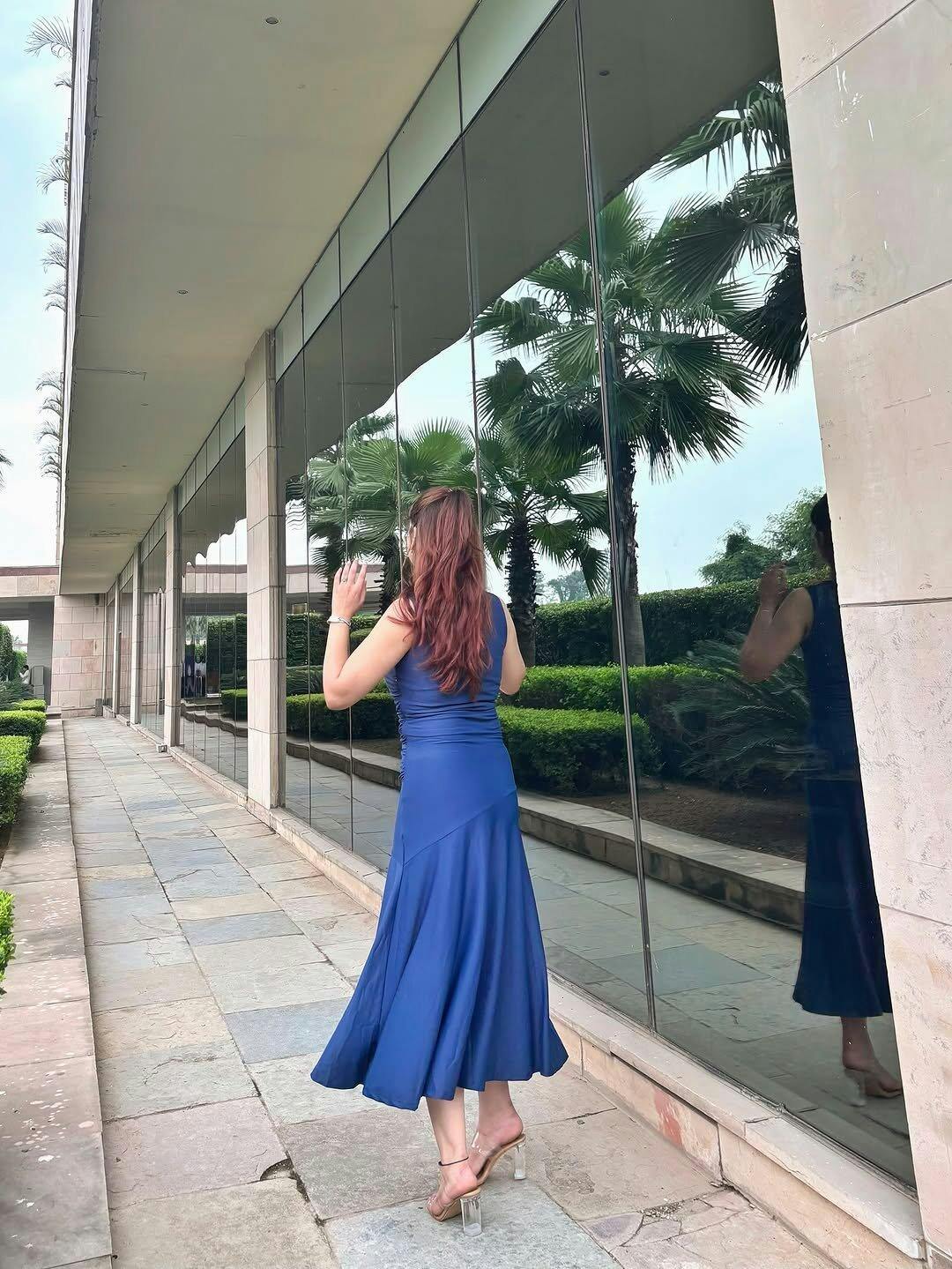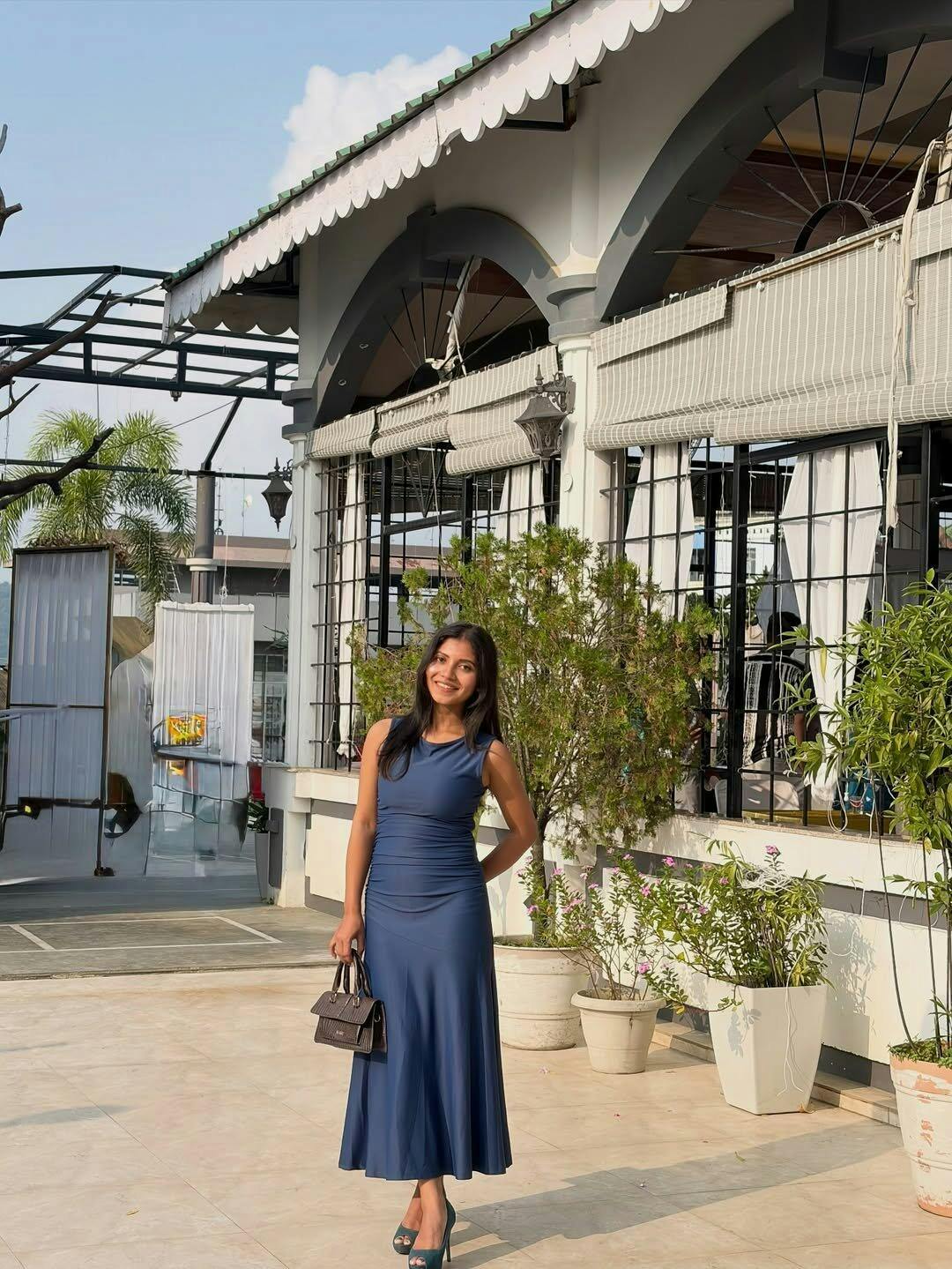 This boat neck maxi dress is a timeless piece designed to flatter every silhouette. With its ruched detailing along the waist and hips, it creates a structured yet elegant drape. The solid dark navy shade adds sophistication, making this boat neck maxi dress perfect for evening wear or special occasions where you want effortless style.