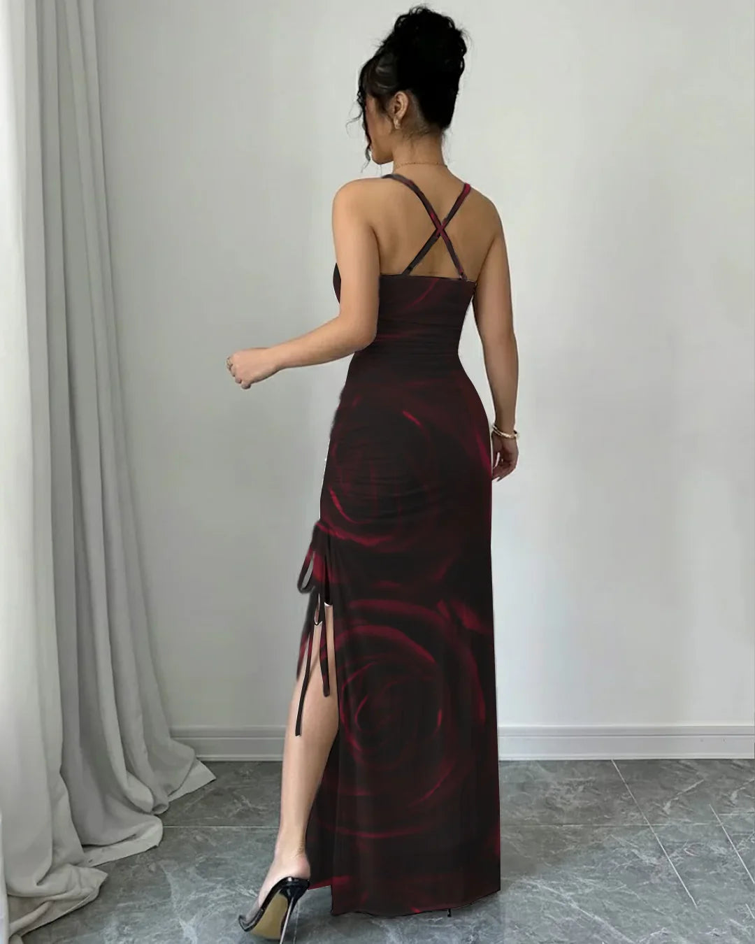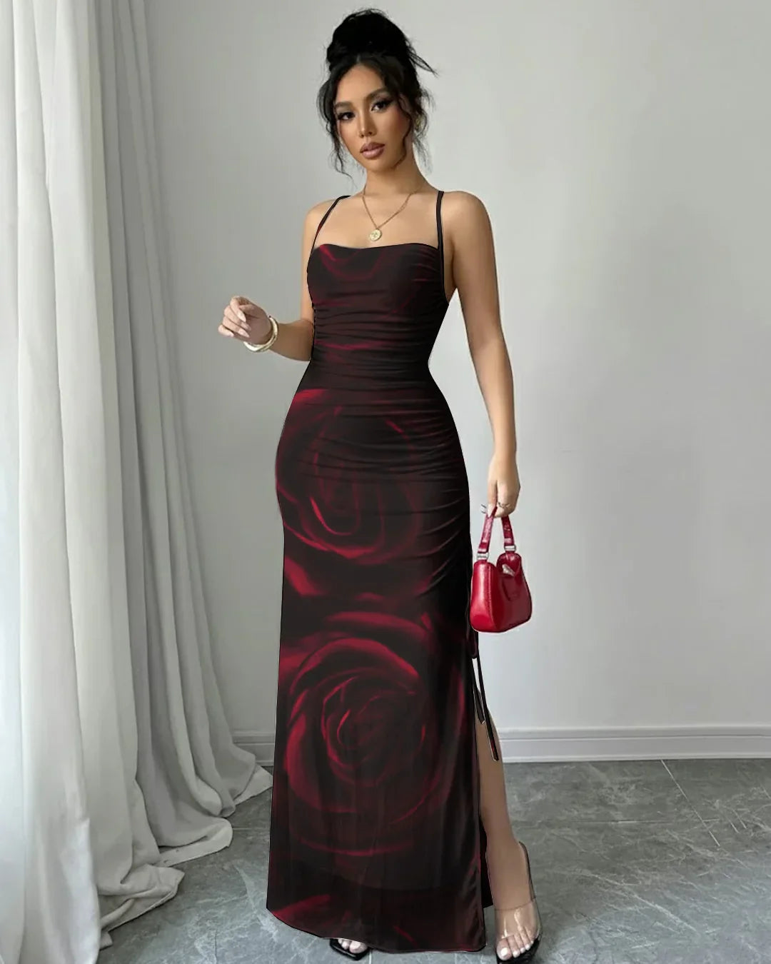 Rose Floral Print Sleeveless Bodycon Maxi Dress