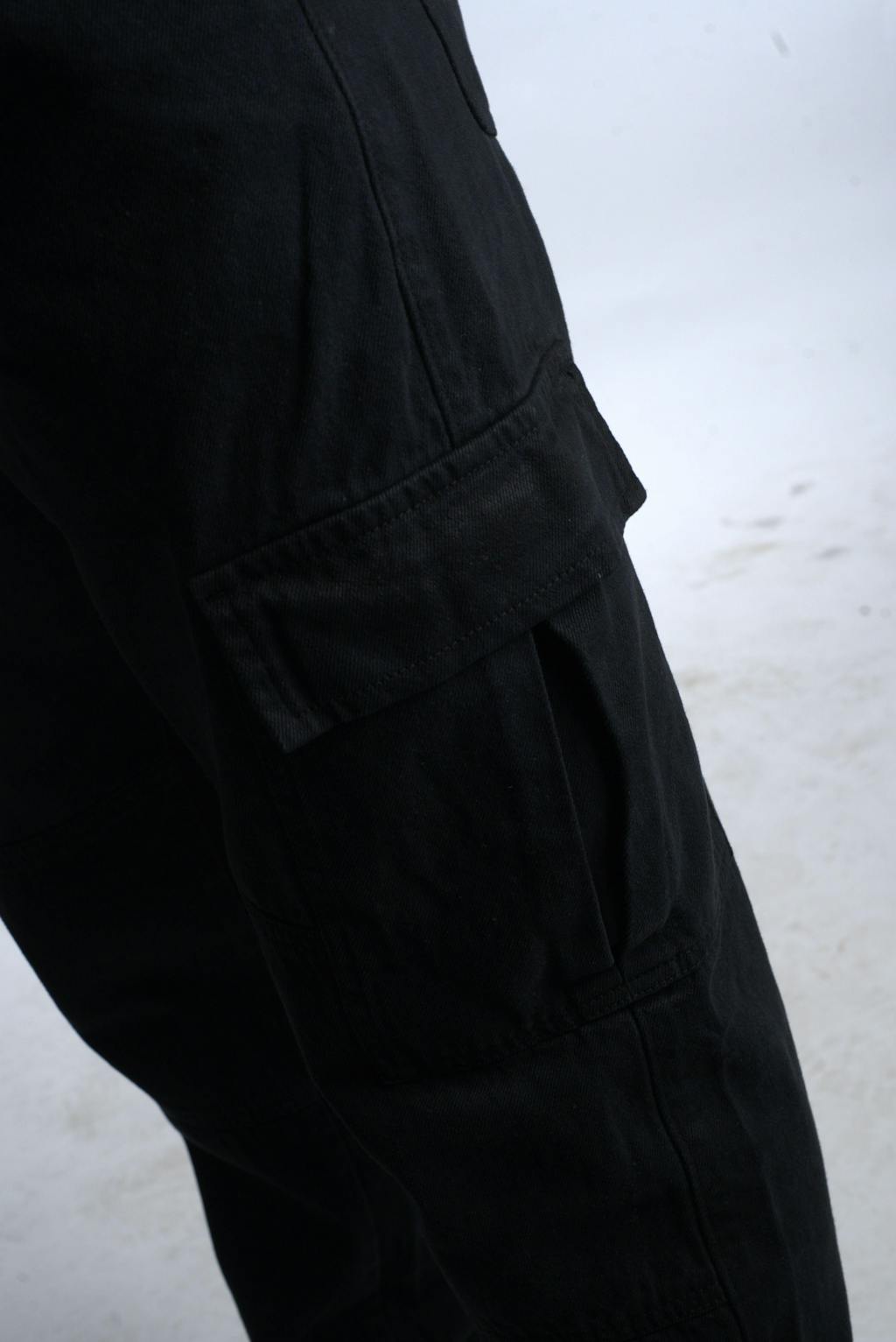Men High-Rise Low Distress Black Cargo Jeans
