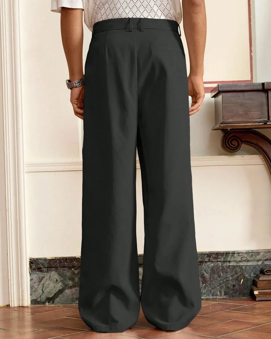 These trousers work well for formal settings, office wear, or smart casual plans. They feel comfortable for long hours and stay structured throughout the day. Pair them with shirts, knitwear, or blazers to switch between classic and contemporary looks. These straight black trousers deliver effortless style with a tailored finish.