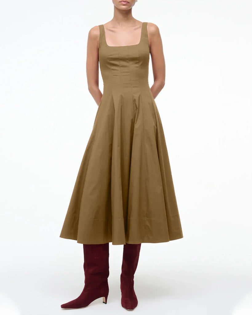 A Line Midi Dress: An a-line midi dress flatters all body types with a flared shape that moves with you.