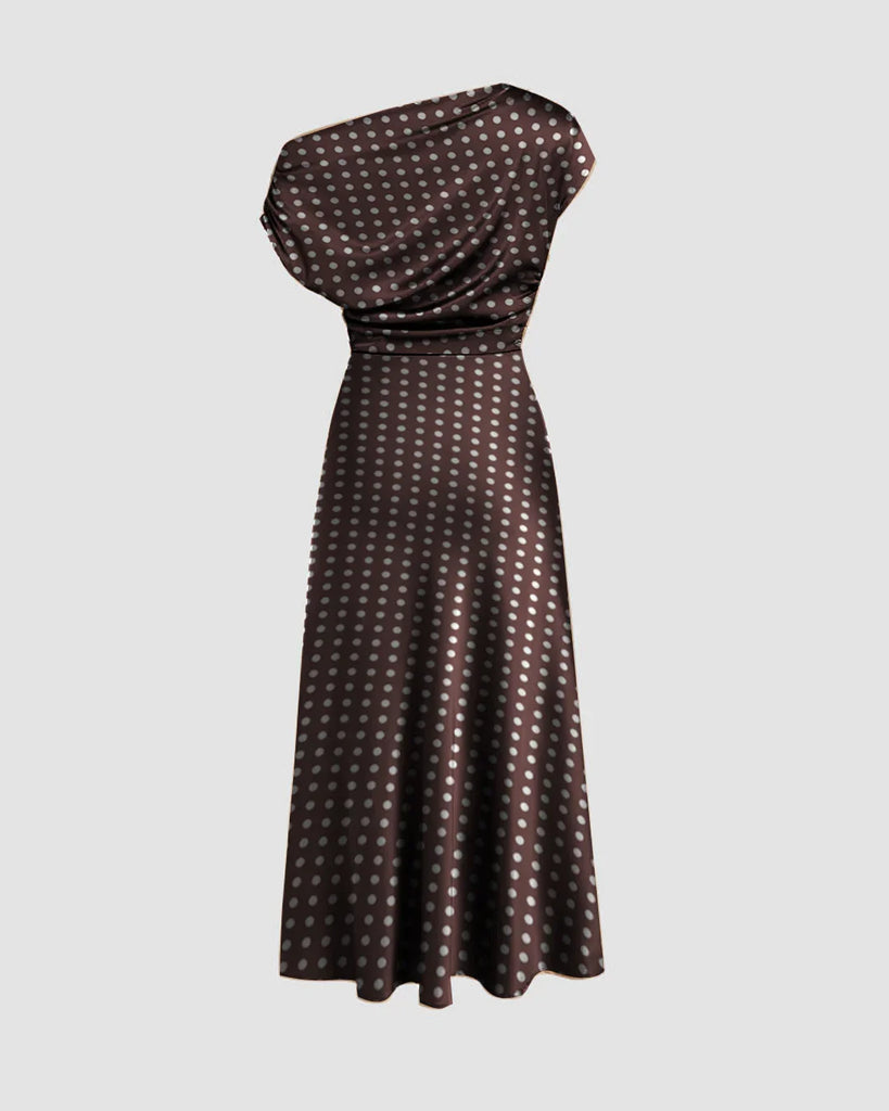Maroon one-shoulder dress with faux fishbone design, romantic style women’s evening wear