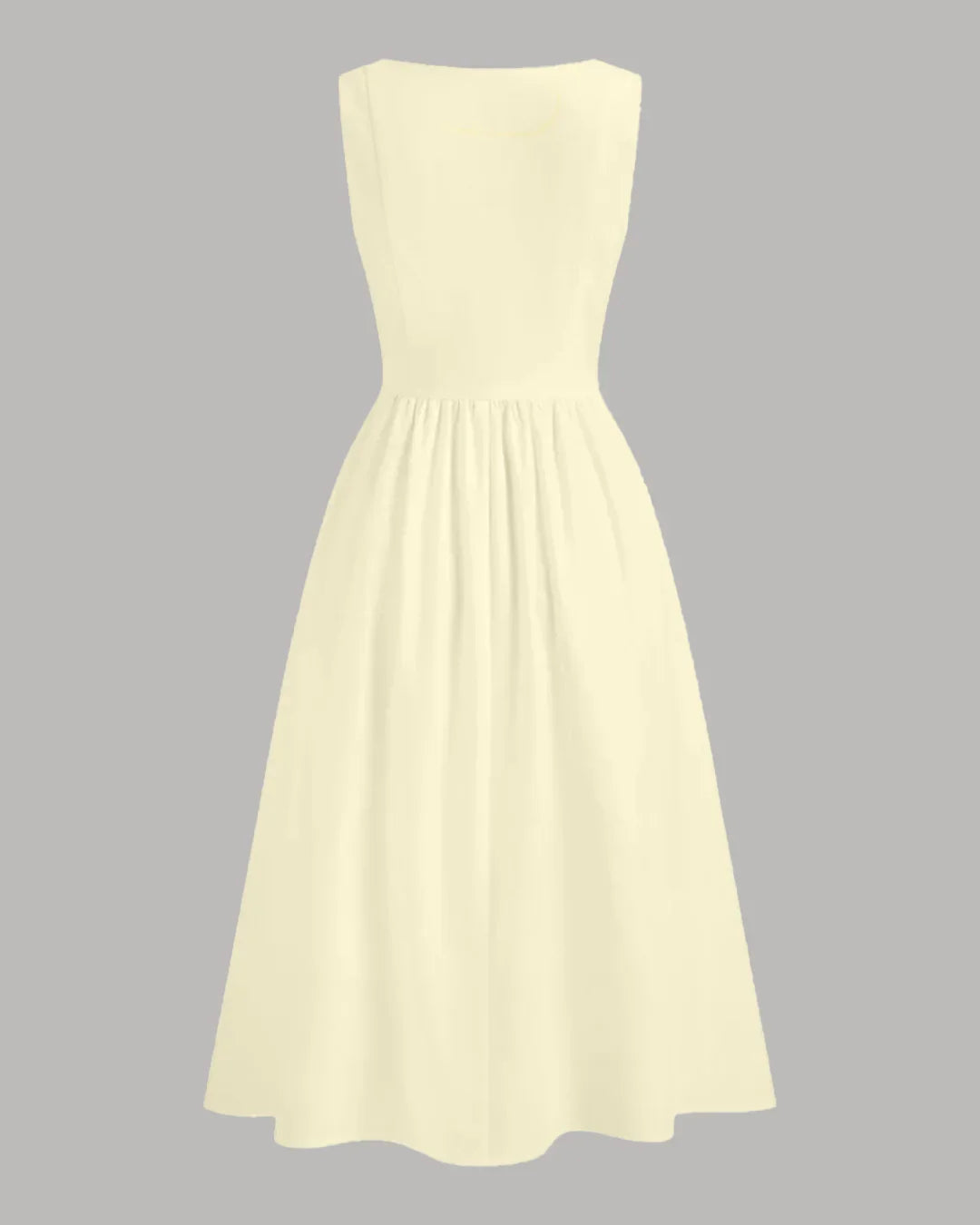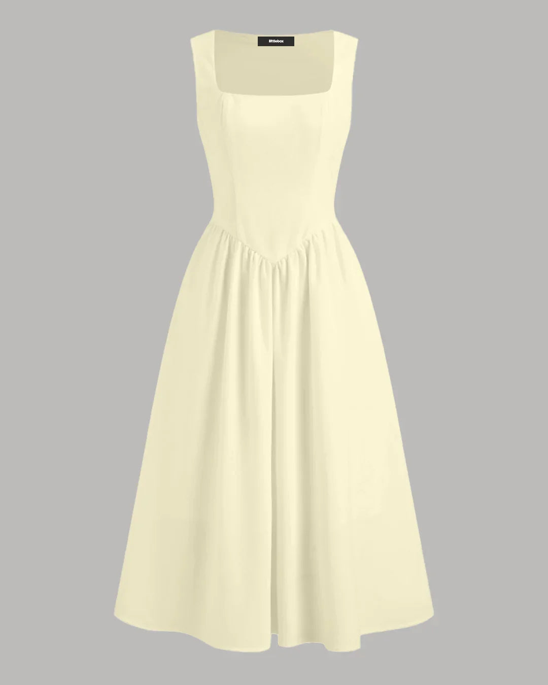 Sleeveless Square Neck A-Line Midi Dress in Vanilla