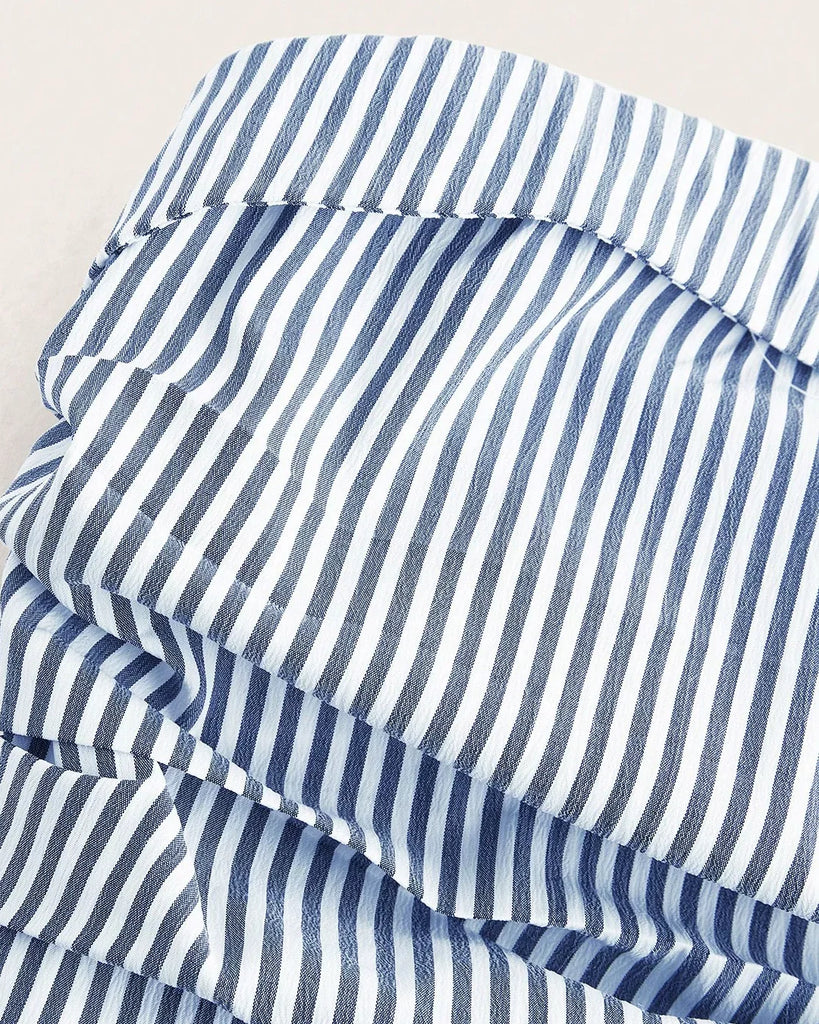 This A Line Midi Dress brings a soft, breezy shape with a clean strapless neckline and a shirred bust that fits comfortably without slipping. The striped pattern adds a fresh, summery feel while the A line flow creates an easy, flattering look for all body shapes. The light polyester cotton blend keeps it soft, breathable, and perfect for warm days when you want effort free style with a polished finish. The overall vibe is relaxed but chic, making it a standout A Line Midi Dress for everyday wear.