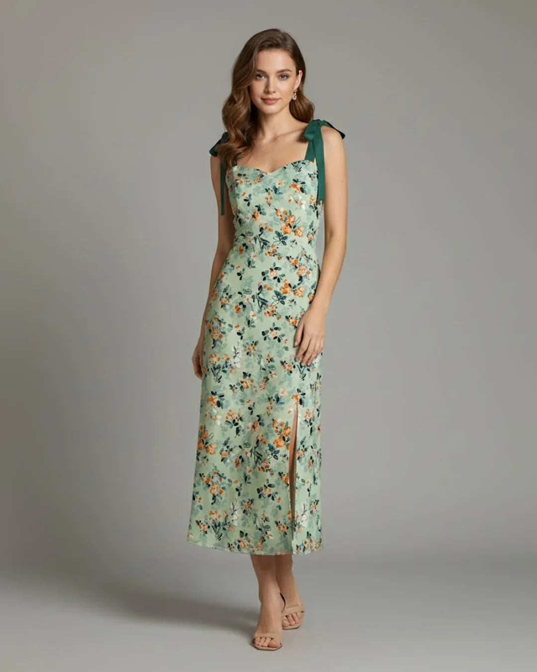 Floral Midi Dress with tie-shoulder detail for an adjustable fit
