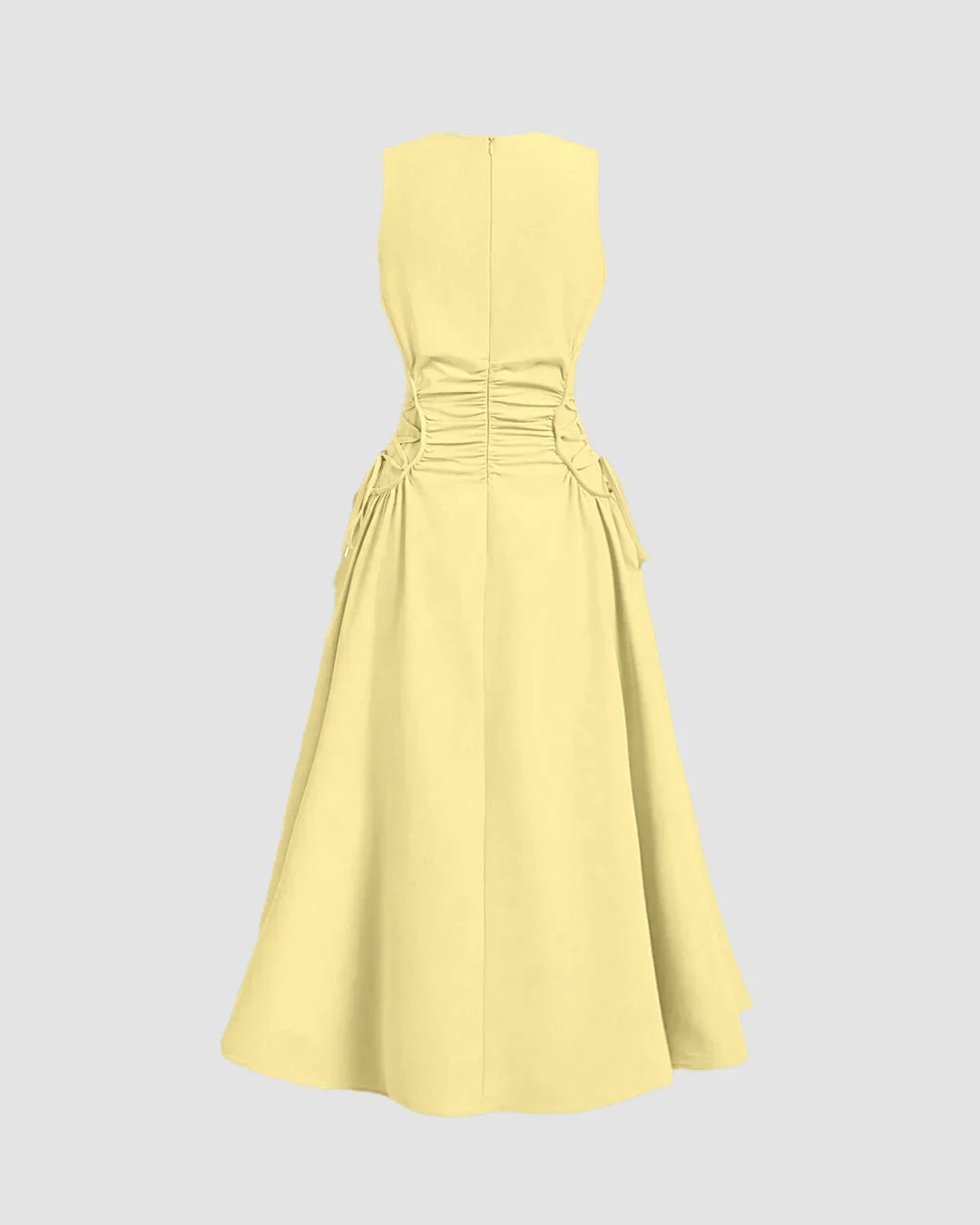 Vanilla Sleeveless Midi Dress with Side Ruched Detail