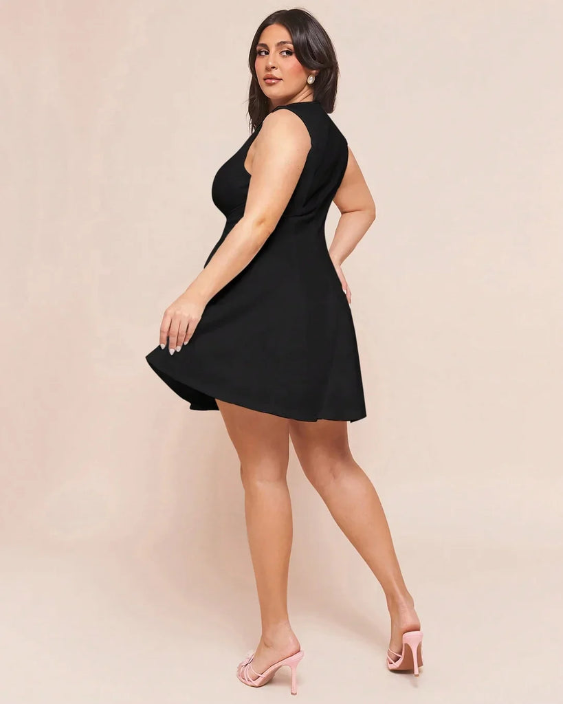 Black Round Neck Sleeveless Black A-Line Mini Dress Curve & Plus