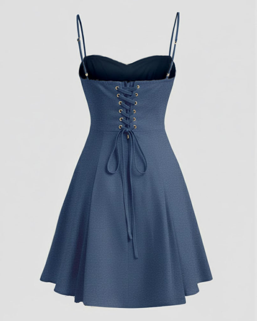 The Dark Navy Blue Sweetheart Neck Spaghetti Strap Mini Dress gives a soft, cute, and easy look for everyday outings. The sweetheart neckline adds shape, while the fitted dress and flared hem create a balanced, flattering fit. This Spaghetti Strap Mini Dress feels light, simple, and effortless for warm days or casual plans.