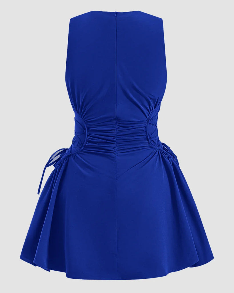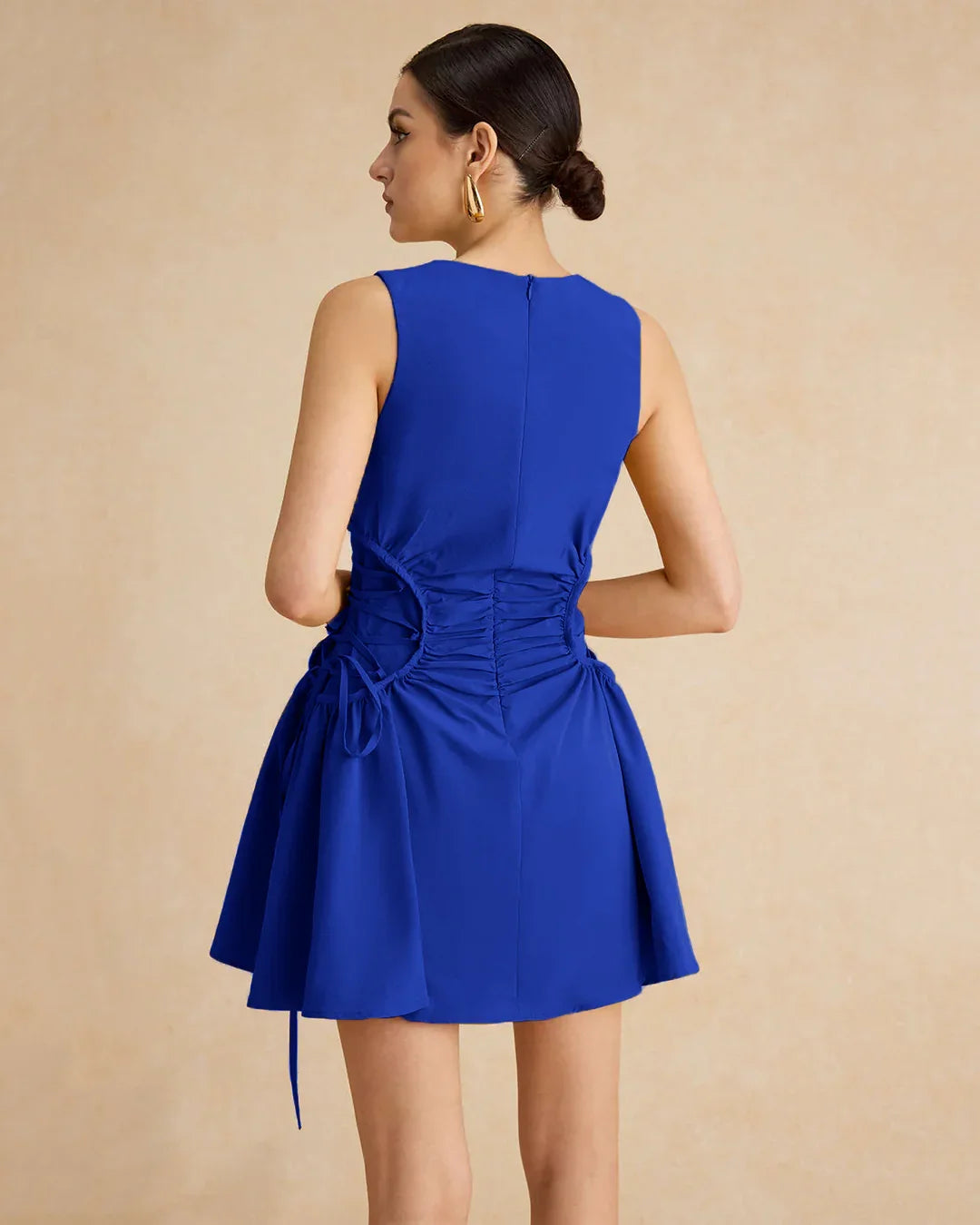 The Ruched Side Sleeveless Fit & Flare Mini Dress in Surf is designed to bring playful charm with a polished edge. Featuring side ruched details with tie accents and a flattering fit-and-flare cut, this flare mini dress adds effortless movement to every step. Perfect for day outings, casual catch-ups, or evening plans, it’s a versatile piece that works across occasions.