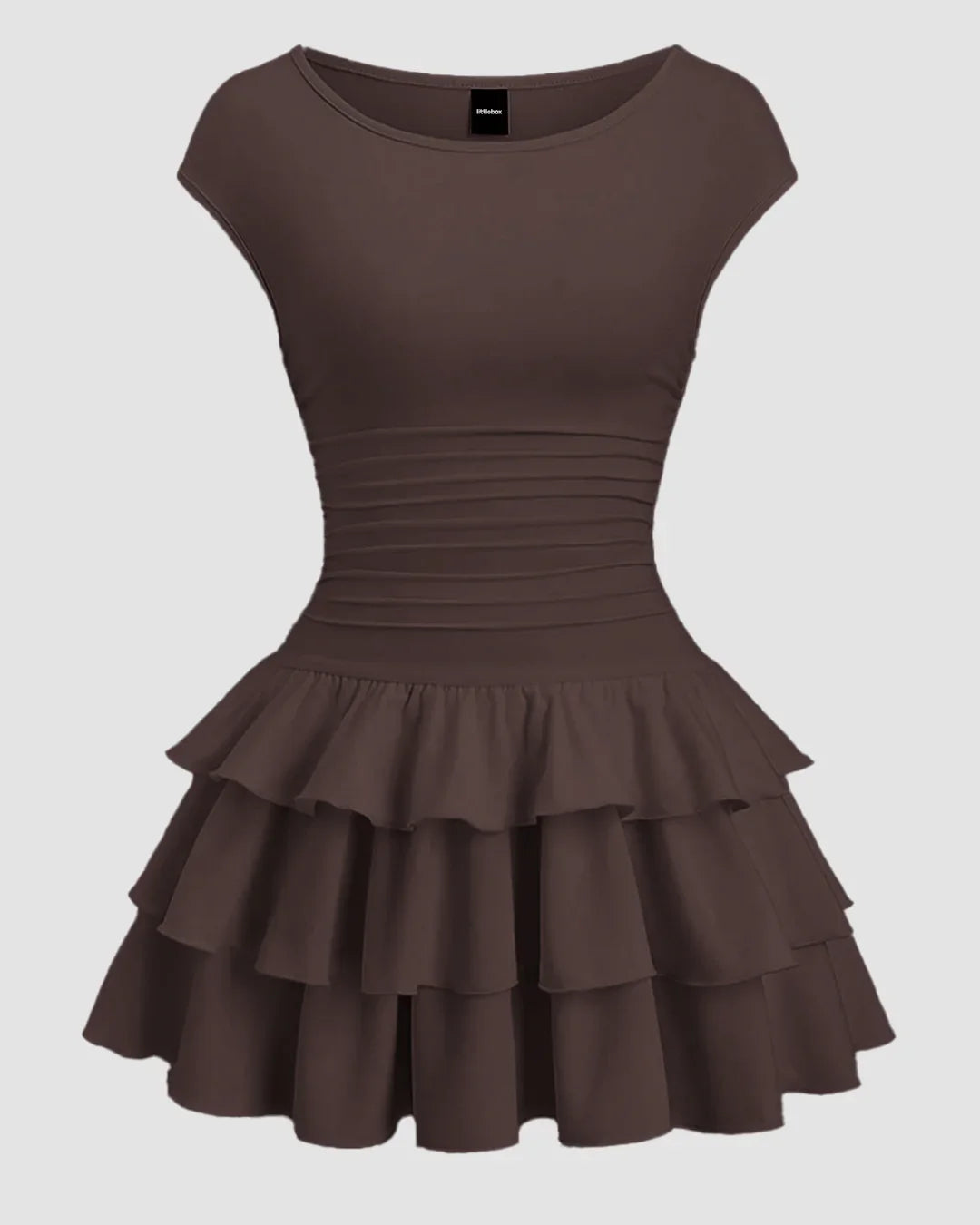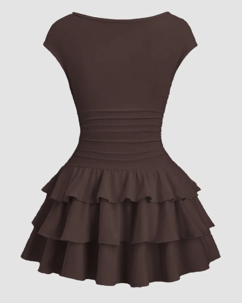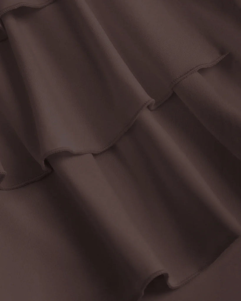 Ruched Waist Tiered Ruffle Mini Dress in Chocolate