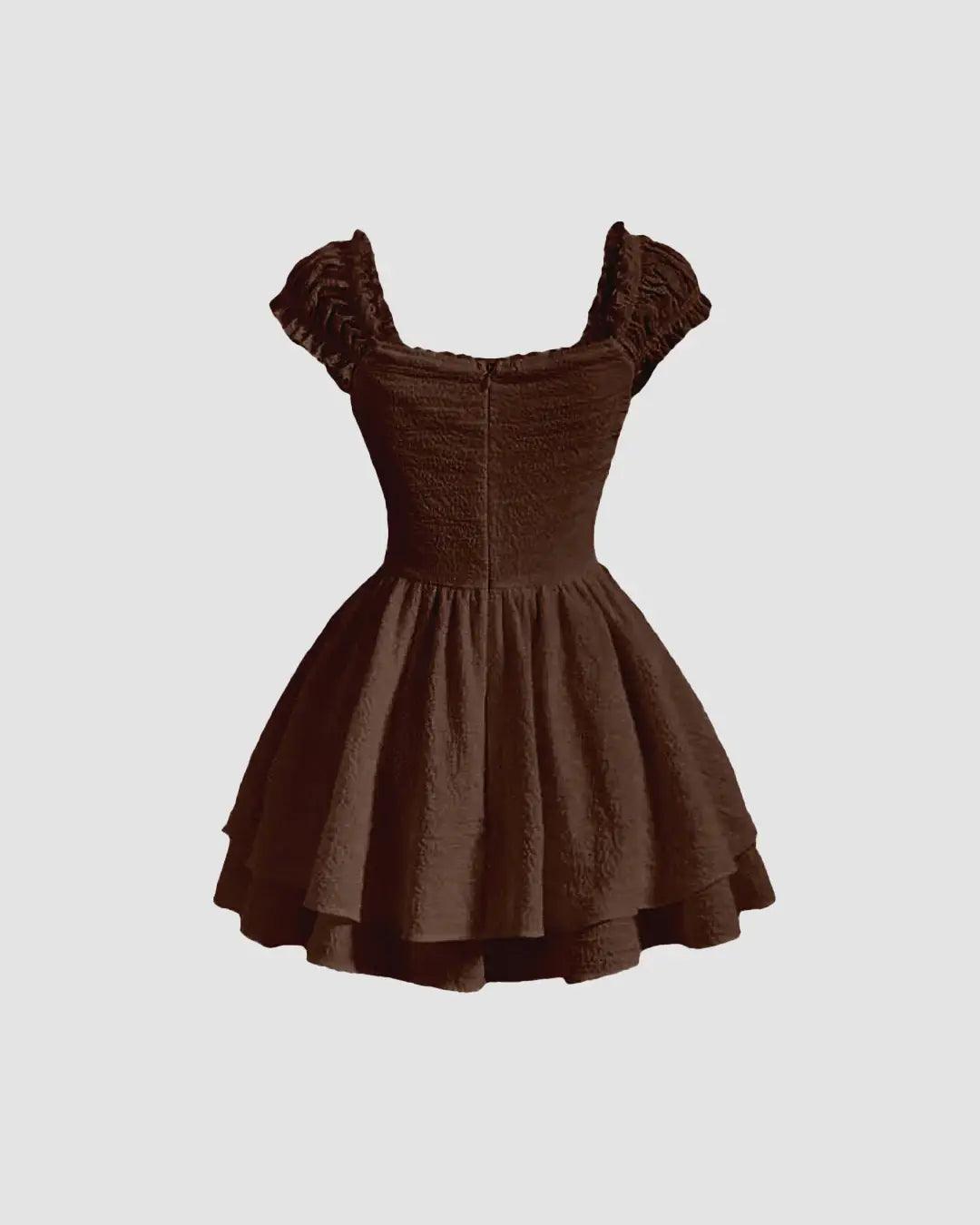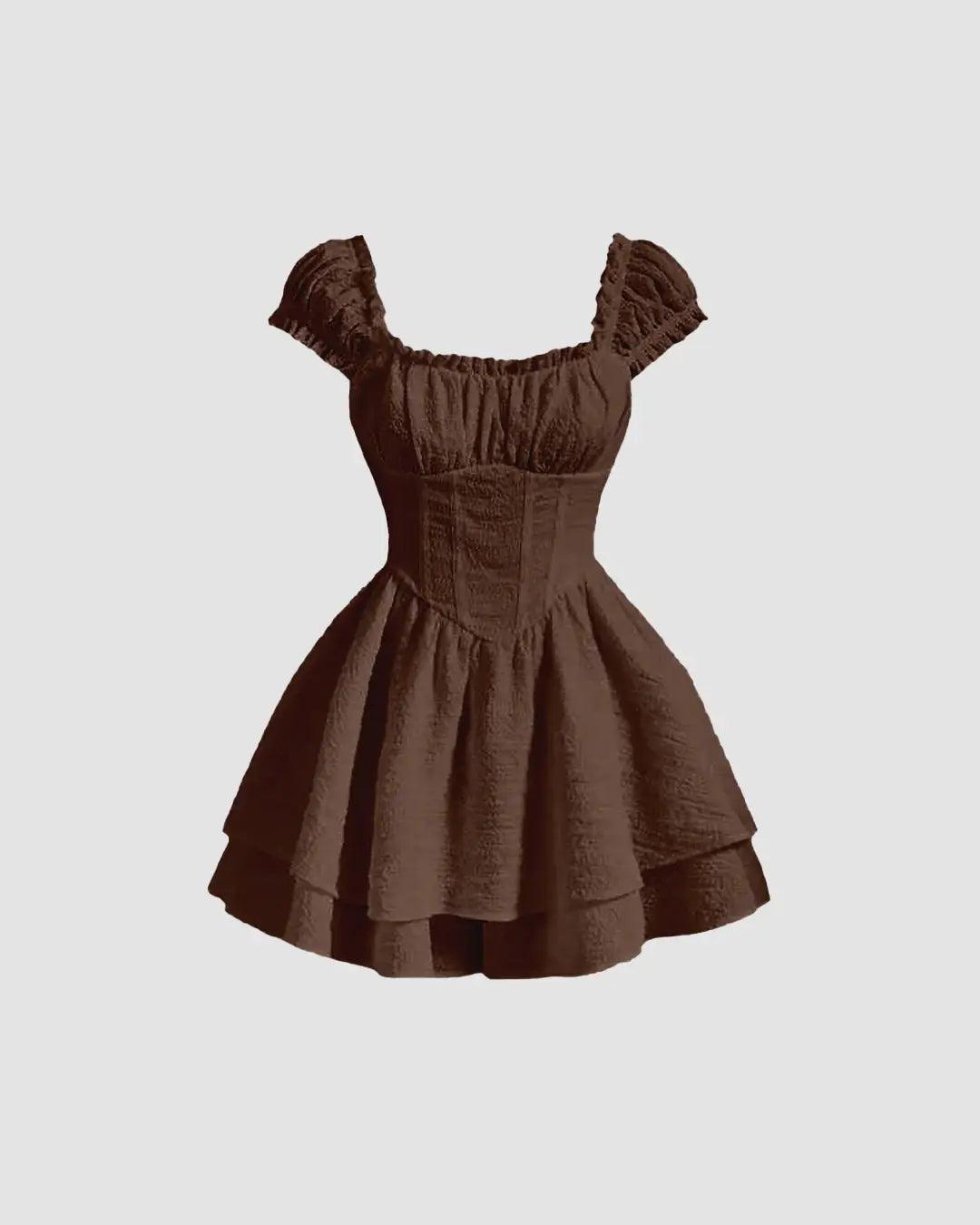 Say hello to the Square Neck Textured Waist-Cinching Chocolate Brown Dress – a fun and flattering outfit for coffee dates, chill weekends, or quick pic moments. This mini dress comes with a snug corset-style waist and a cute double-layered skirt that adds volume and shape.